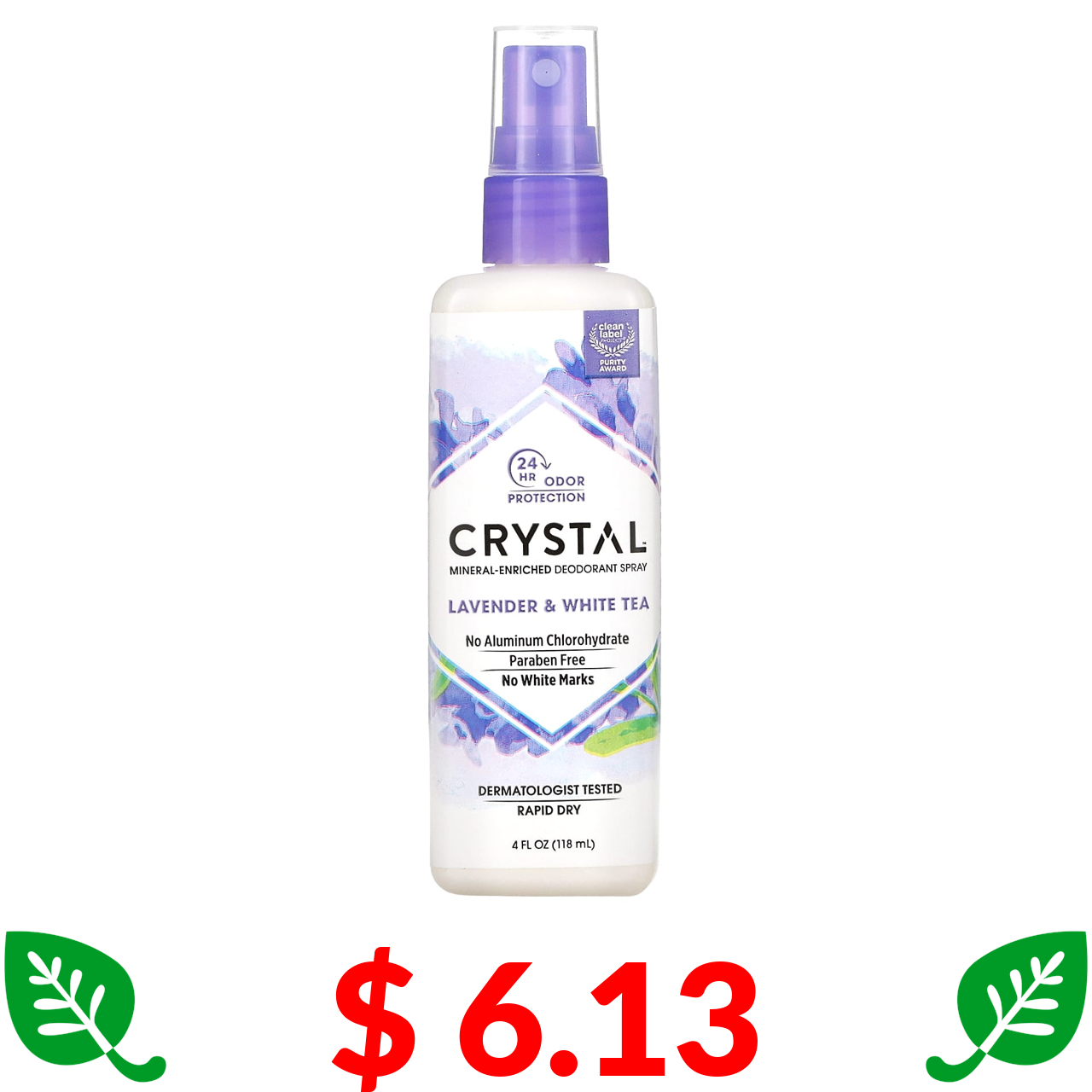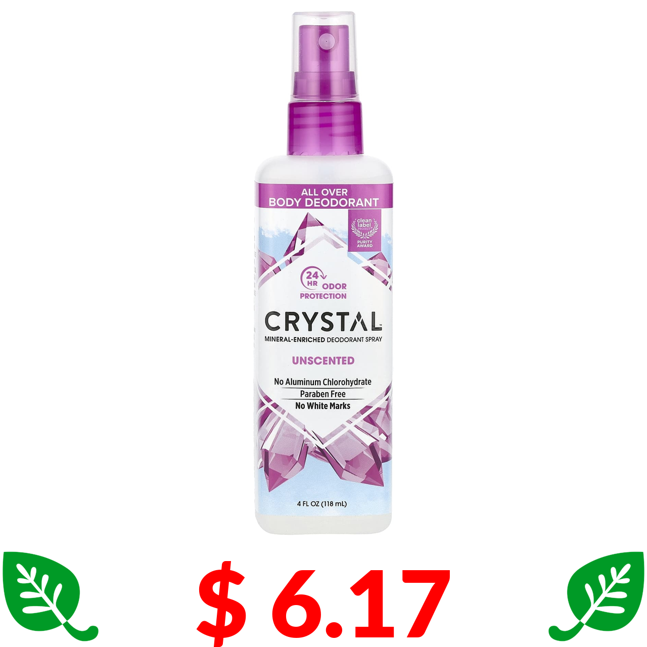 $ 6.17 Crystal Body Deodorant, мініральний спрей-дезодорант, без запаху, 118 мл (4 рідк. унції)