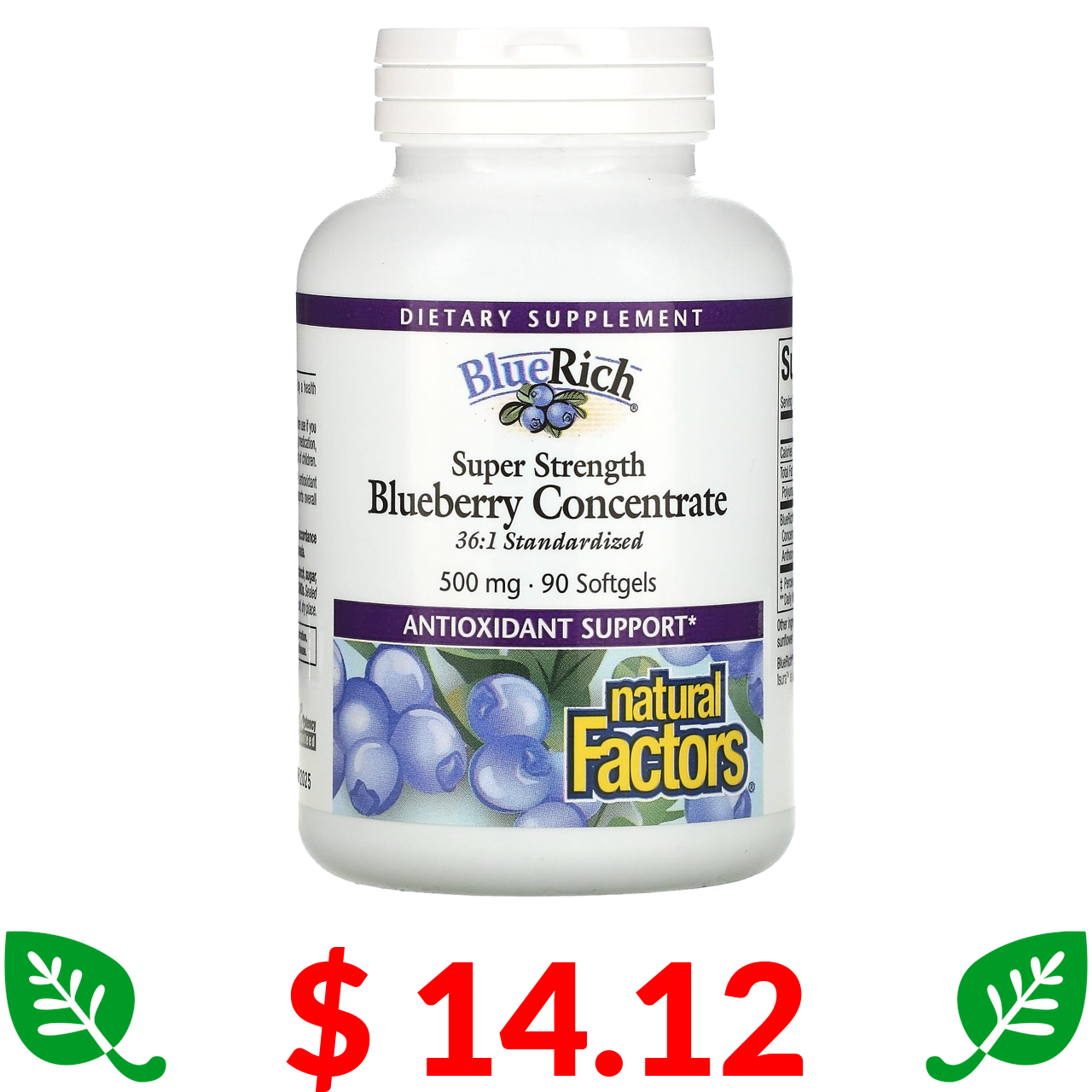 $ 14.12 Natural Factors, BlueRich, Super Strength, концентрат лохини, 500 мг, 90 капсул