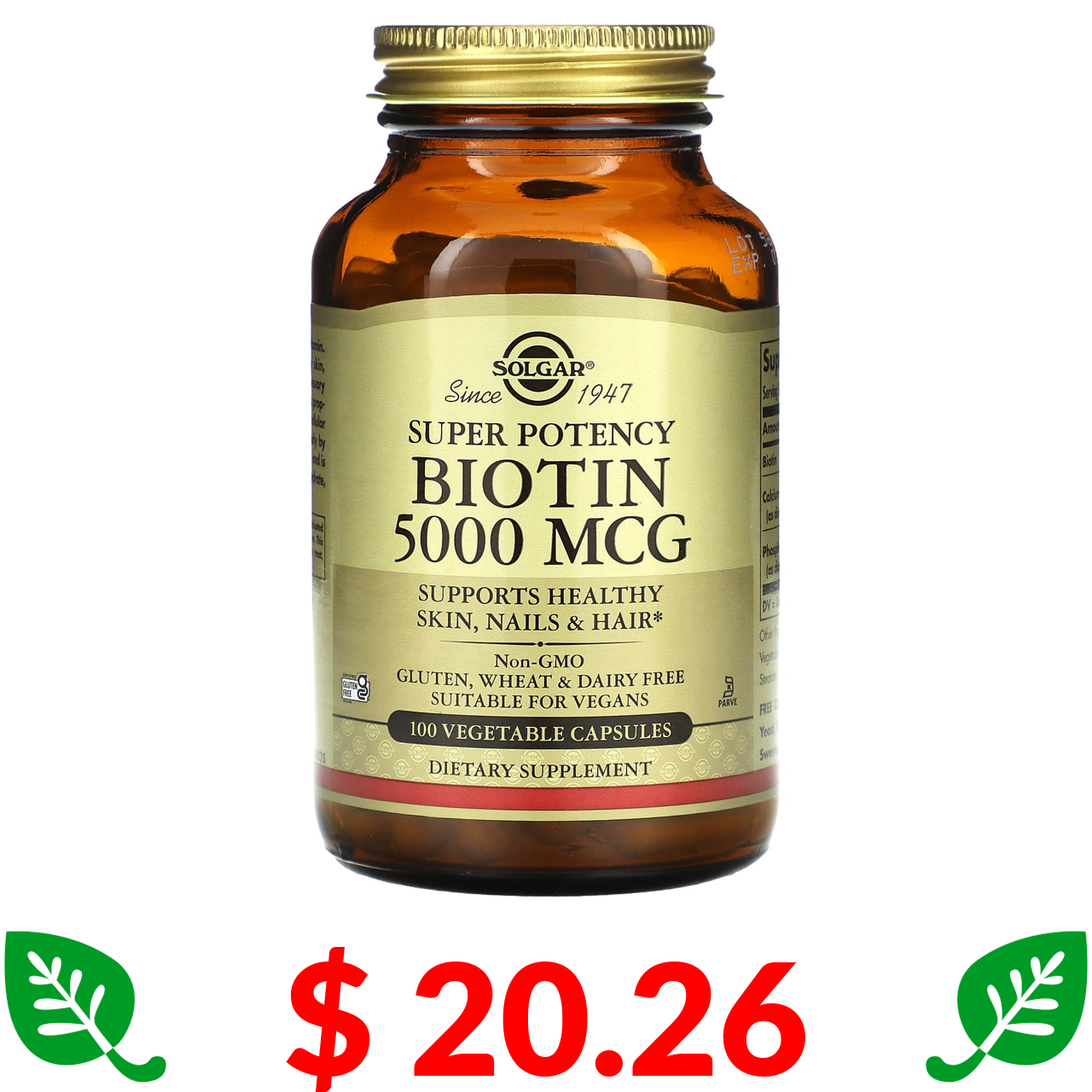 $ 20.26 Solgar, біотин, 5000 мкг, 100 вегетаріанських капсул