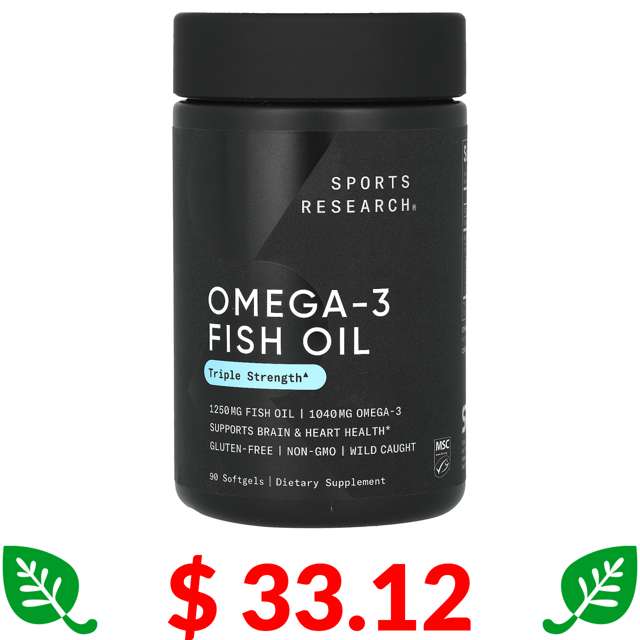 $ 33.12 Sports Research, риб’ячий жир з омега-3, потрійна сила, 90 капсул
