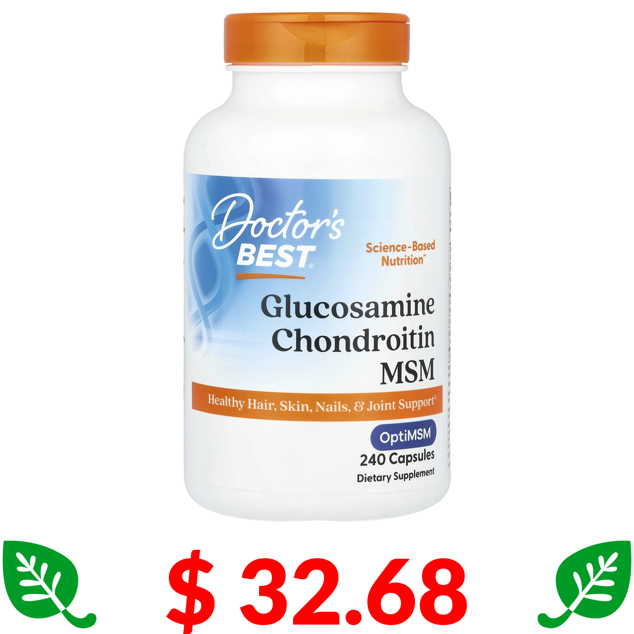 $ 32.68 Doctor's Best, глюкозамін, хондроїтин і МСМ з OptiMSM, 240 рослинних капсул