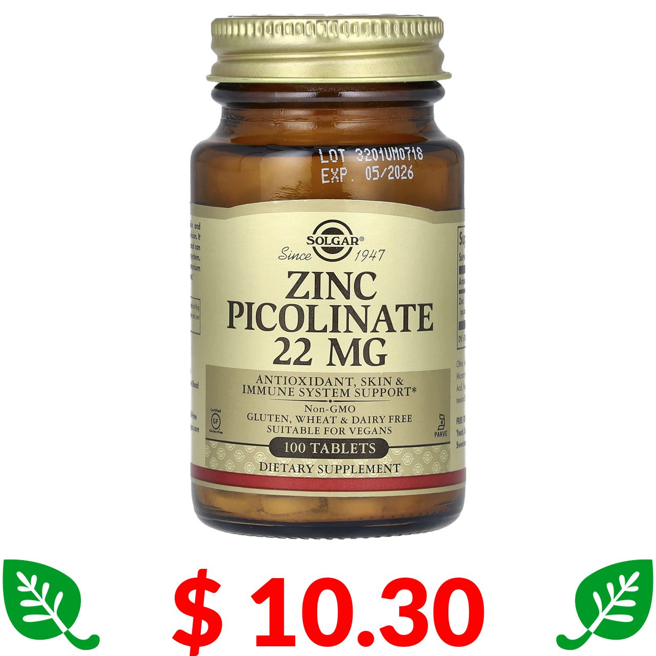 $ 10.30 Solgar, Піколінат цинку, 100 таблеток