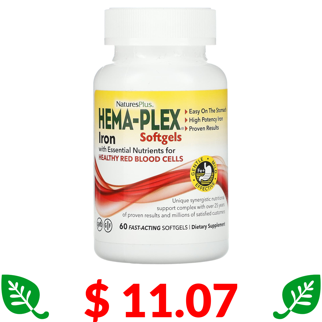 $ 11.07 Nature's Plus, Hema-Plex, 60 швидкодіючих капсул