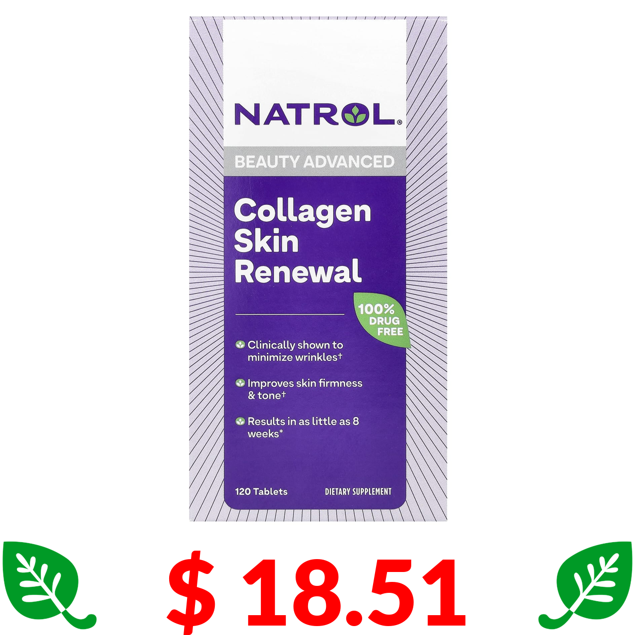 $ 18.51 Natrol, колаген для відновлення шкіри, 120 таблеток