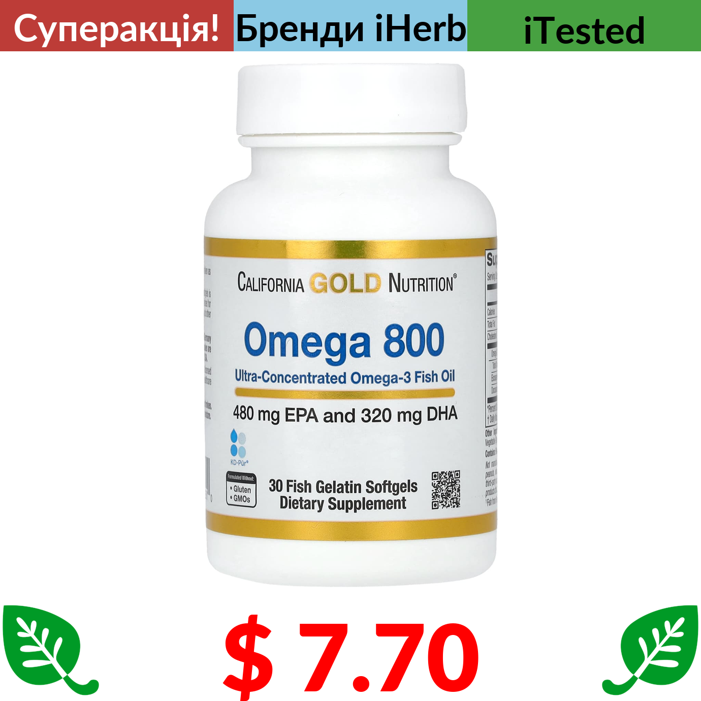 $ 5.04 California Gold Nutrition, вітамін D3, 50 мкг (2000 МО), 90 капсул із риб’ячого желатину