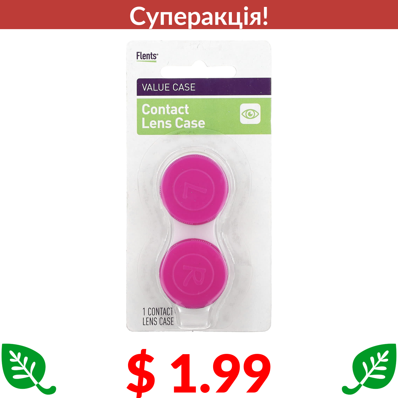 $ 1.99 Flents, футляр для контактних лінз, 1 шт