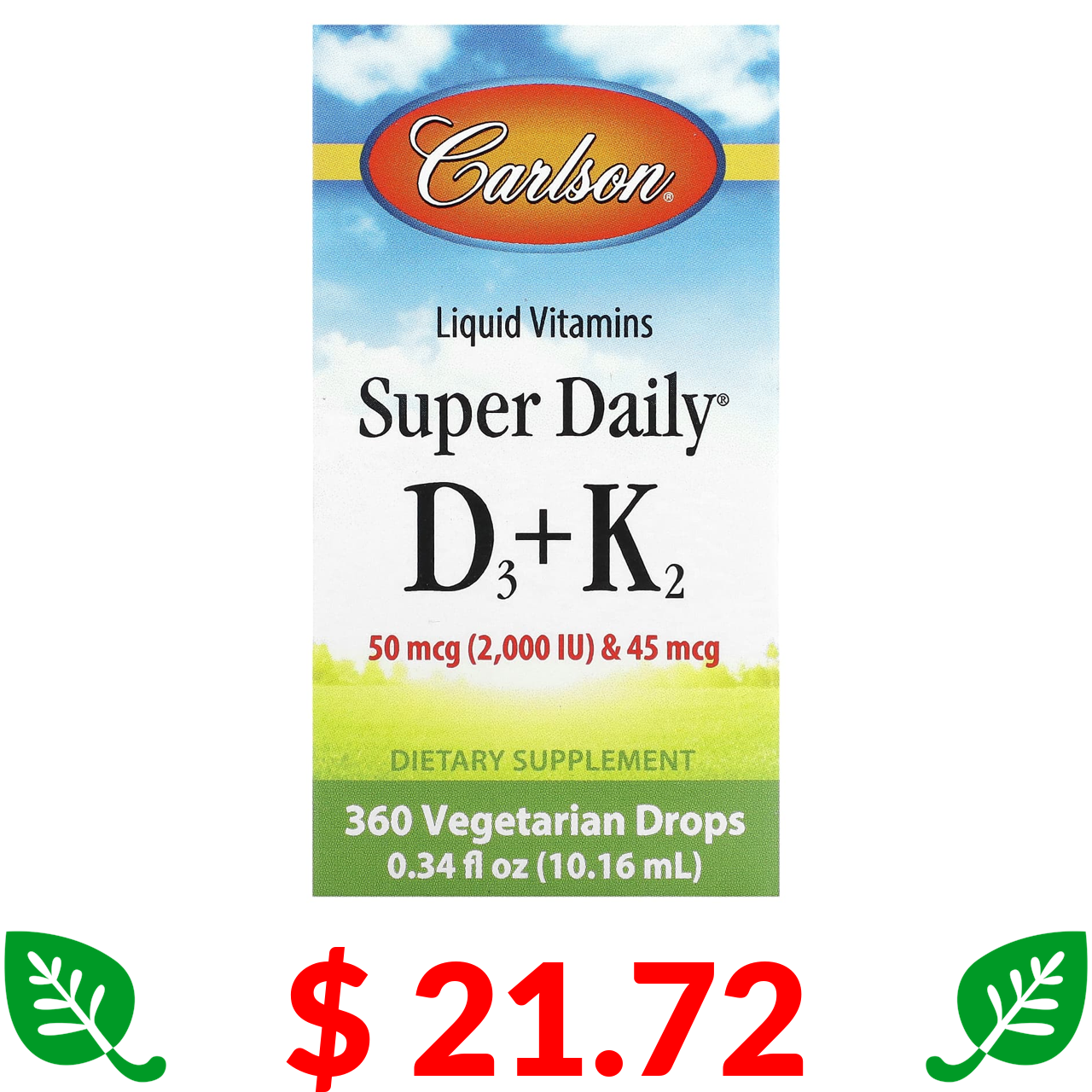 $ 7.22 Carlson, Вітамін D3 і вітамін K2, 30 вегетаріанських капсул