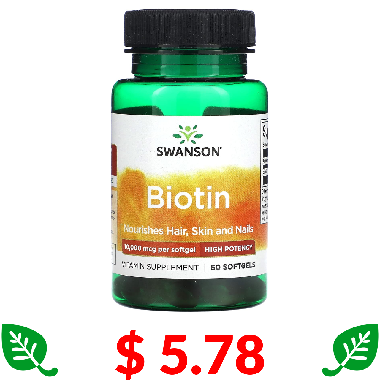 $ 5.78 Swanson, біотин, 10 000 мкг, 60 капсул