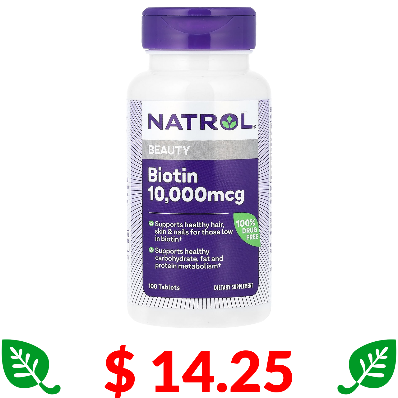 $ 14.25 Natrol, Beauty, біотин, 10 000 мкг, 100 таблеток