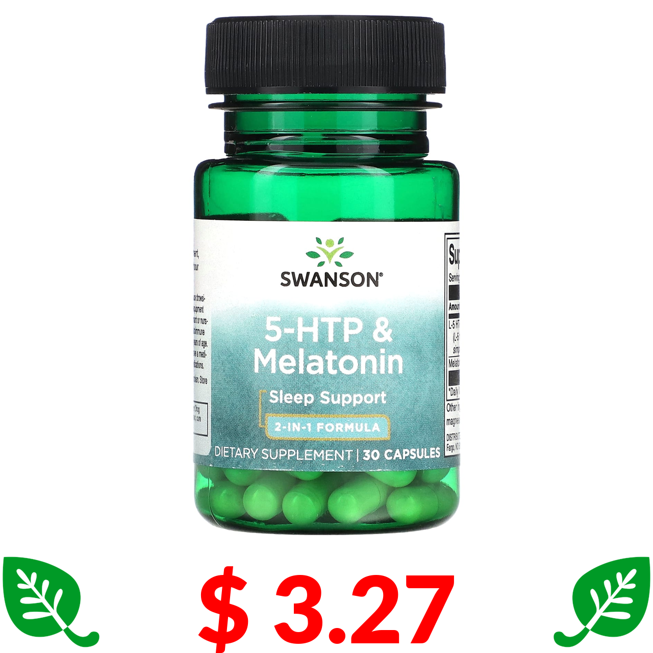 $ 3.27 Swanson, 5-HTP та мелатонін, 30 капсул