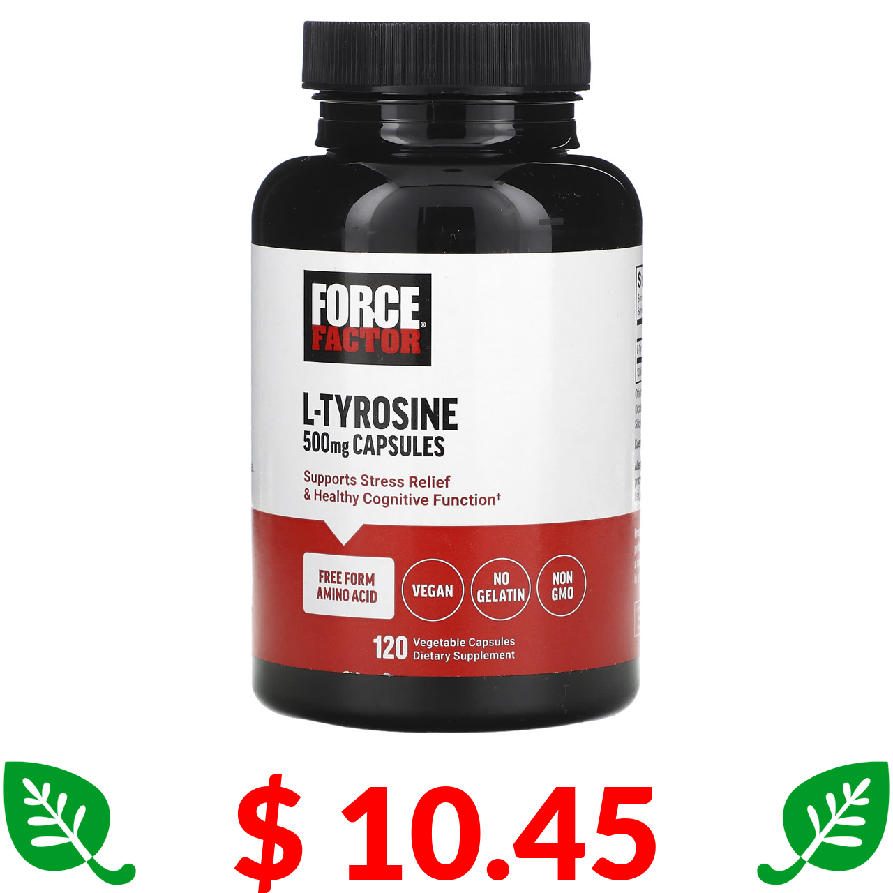 $ 10.45 Force Factor, L-тирозин, 1000 мг, 120 рослинних капсул (500 мг в 1 капсулі)