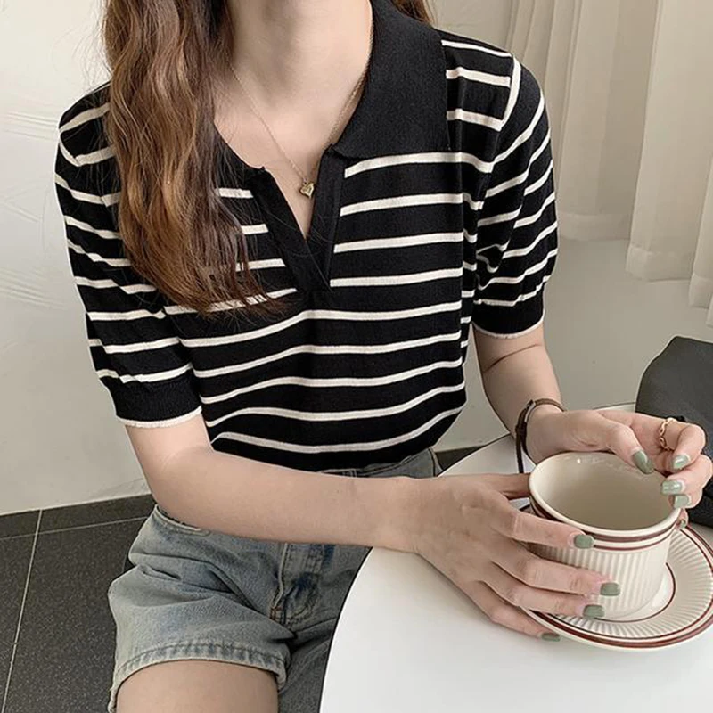 ziPzIgzaLooked for 2xl Oversized Summer Loose V-neck Short Sleeve Striped Knitted Women Polo T Shirt Korean Fashion Harajuku Clothes Streetwear Top for a long time, but could not find it? Bring to your attention 2xl Oversized Summer Loose V-neck Short Sleeve Striped Knitted Women Polo T Shirt Korean Fashion Harajuku Clothes Streetwear Top with the best price!