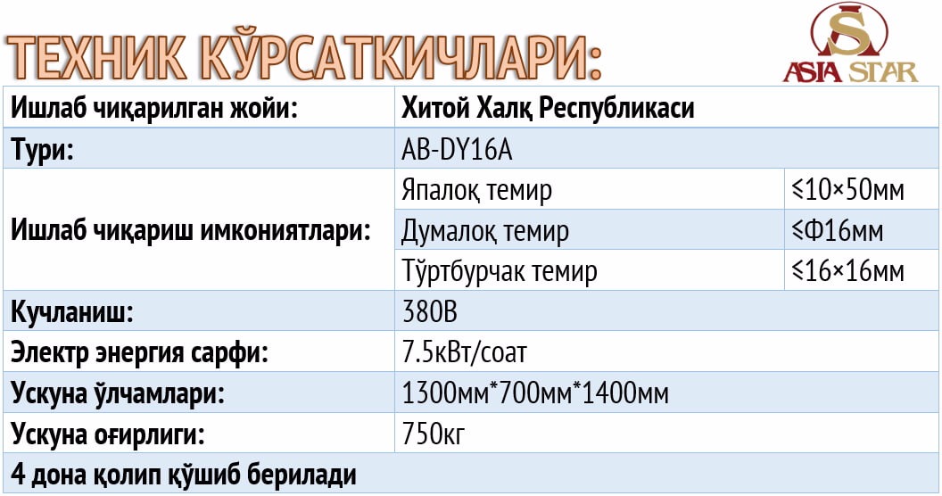 ГИДРАВЛИКА ЁРДАМИДА МЕТАЛЛНИ БУКИБ БЕРИШУзбекско-Китайский Торговый Дом "ASIA STAR" - Оборудование для ковки Скачать видеоНАРХИ ТОШКЕНТ: 4200USD Скачать видеоНАРХИ ТОШКЕНТ: 2400USD Скачать видеоНАРХИ ТОШКЕНТ: 3830USDНАРХИ ТОШКЕНТ: 1510USD