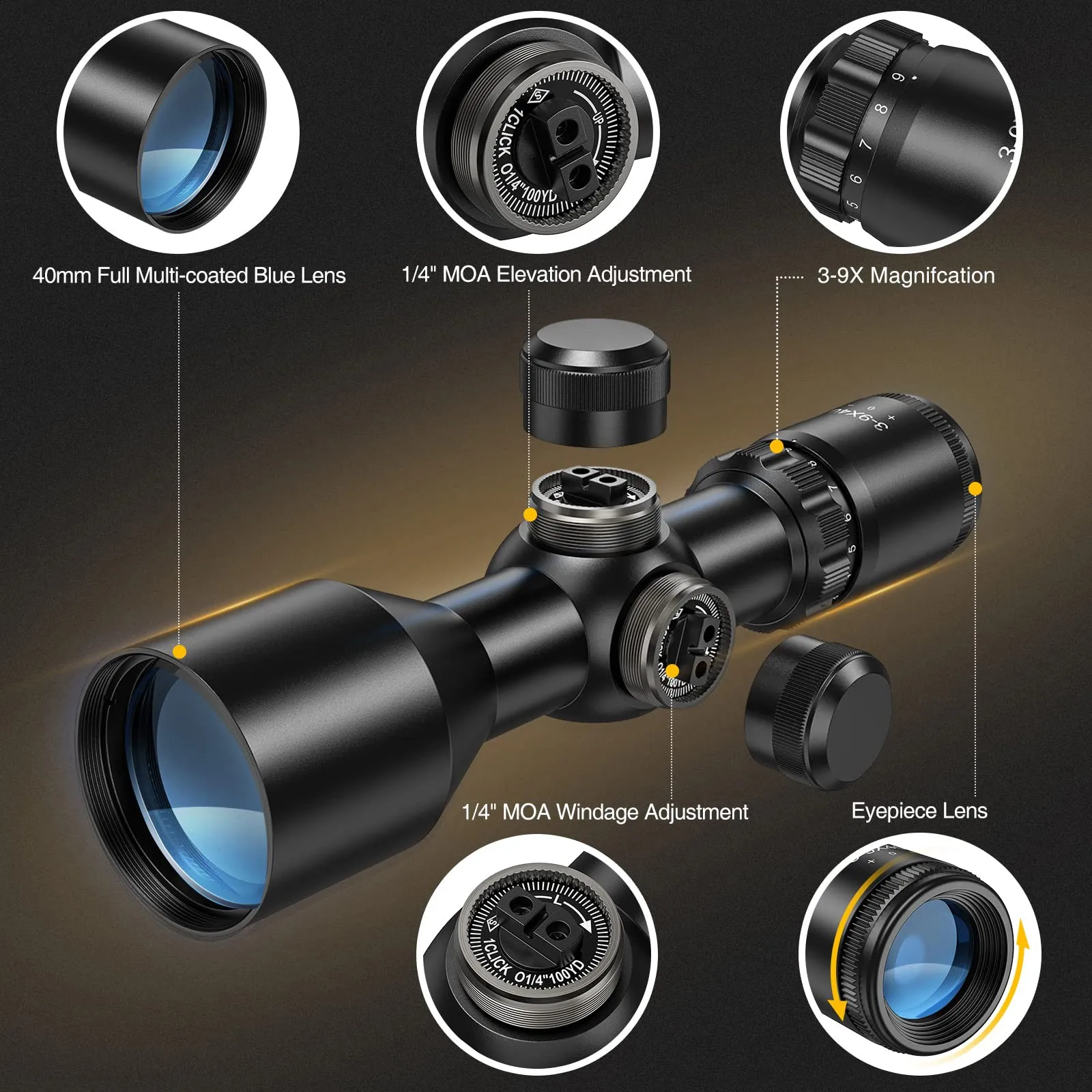 "3-9x40 Compact Rifle Scope Tactical Riflescope Hunting Optical Sight Crosshair Reticle Shooting Rifle Scope for 11/20mm Rail" * Buy Now With Free Shipping Just For $36