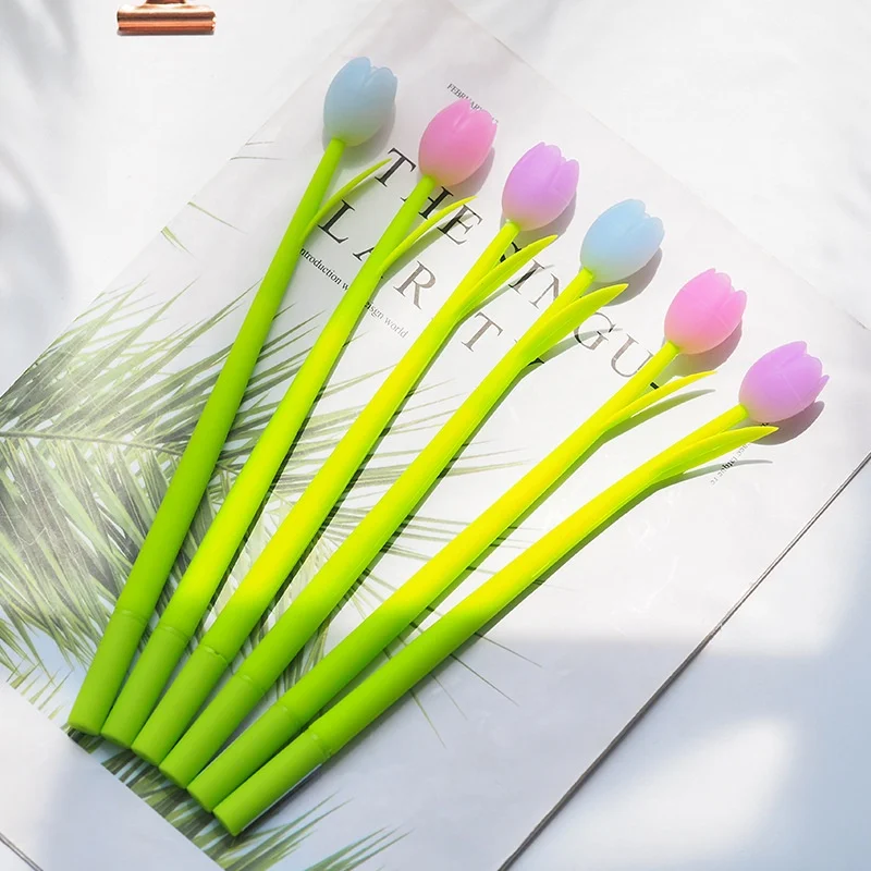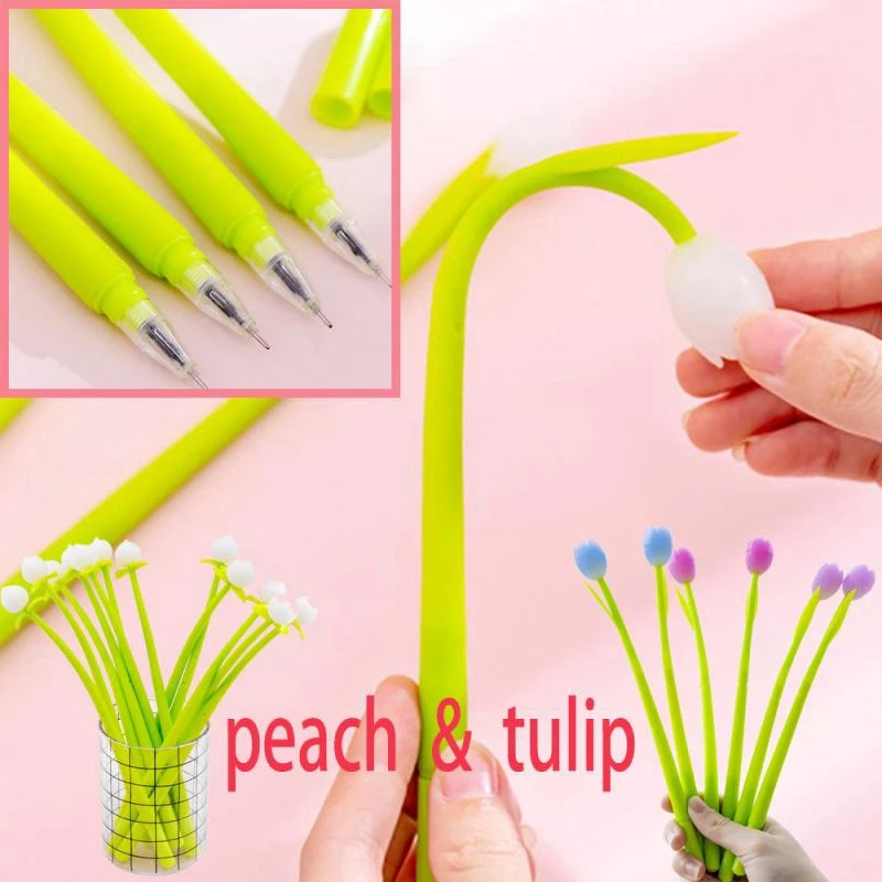 "3 Gel Pens + 20 Refills Gel Pens 0.38mm Creative Plant Silicone Tulip Peach Signature Pens Discoloration Upon Exposure To Light" * Buy Now Just For 3$
