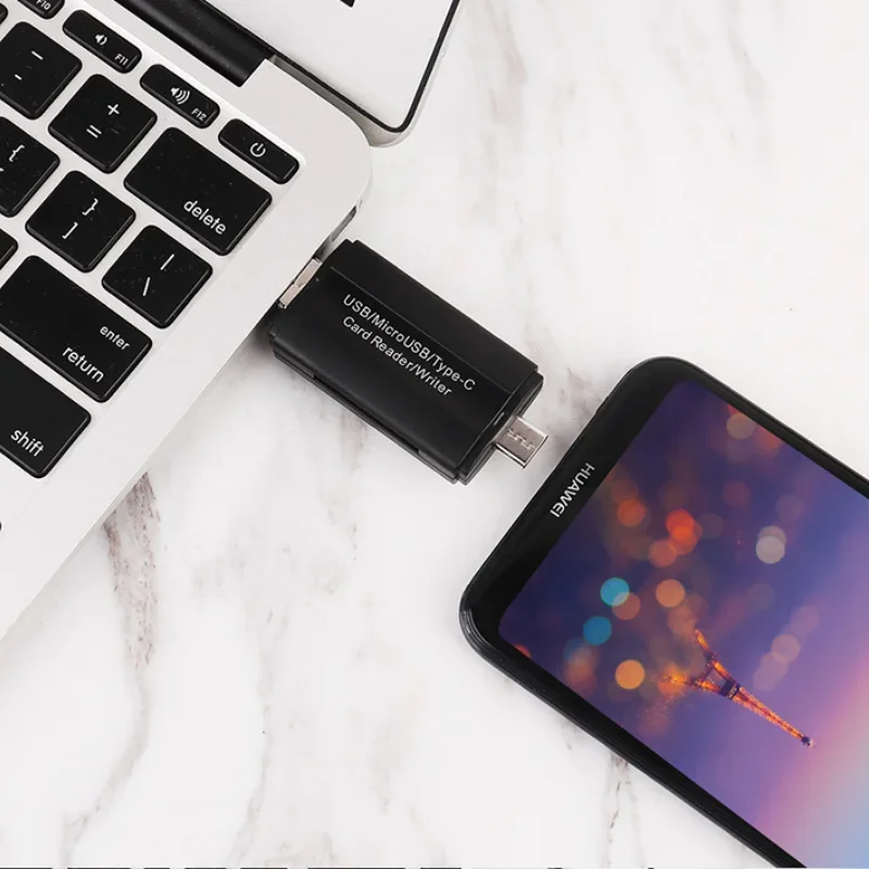 3 In 1 Portable High Speed Card Reader Adapter Type-C OTG Mobile Phone Universal PC Writer Micro USB USB2.0 Home Office - Купить с бесплатной доставкой