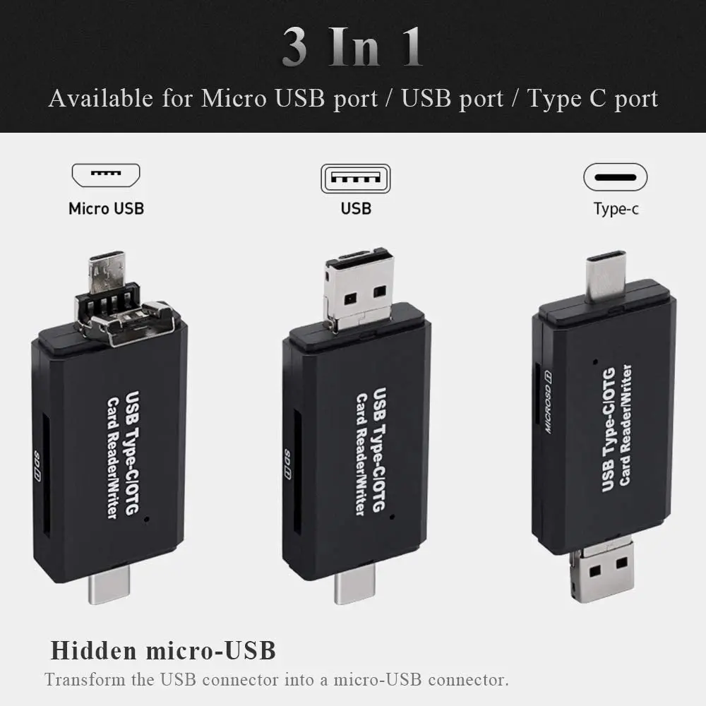 LTZudmlBHere you can buy 3 In 1 USB 3.0 TF/Mirco SD Smart Memory Card Reader For Phone USB 2.0 Card Reader USB-C Type-C OTG Micro SD Card Reader Adapter with free delivery to your post office.