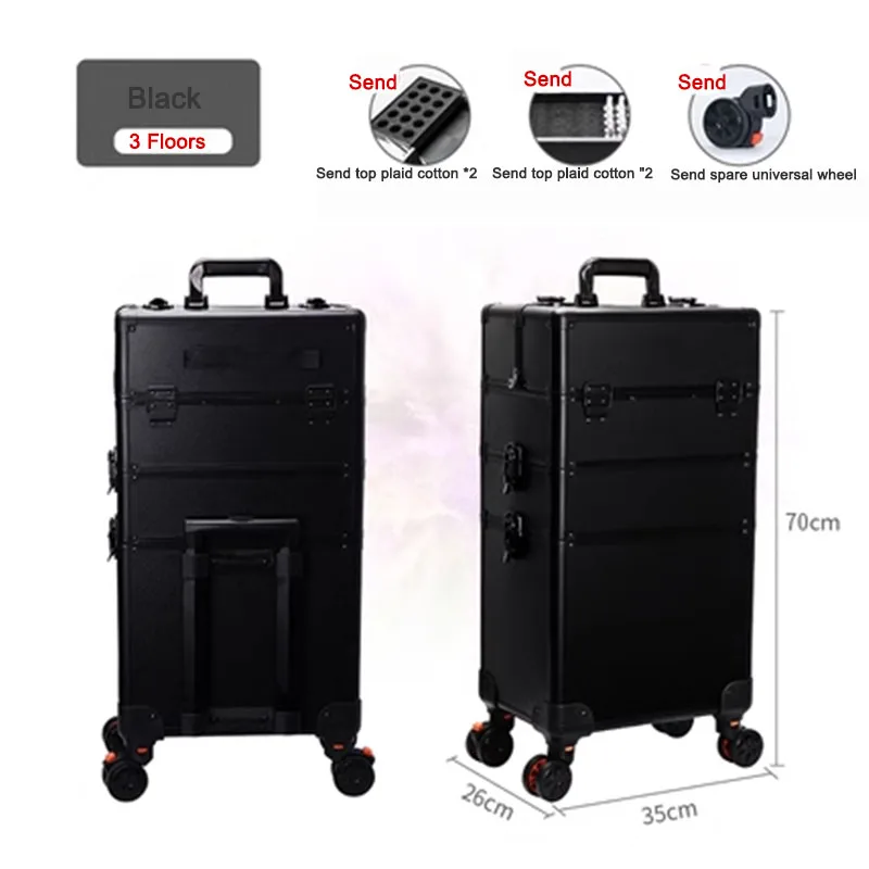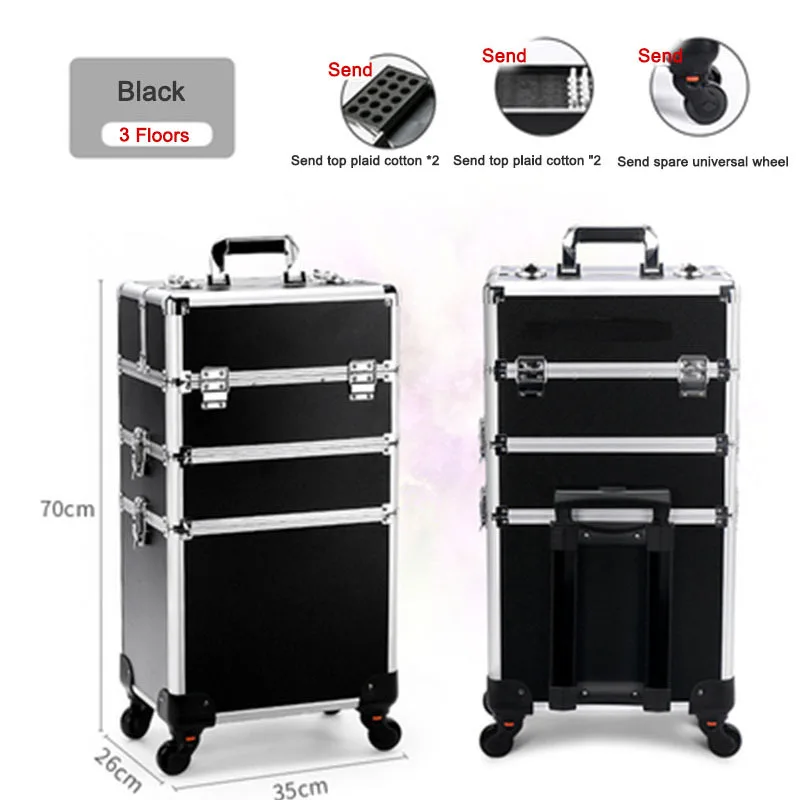 3 Layers Pull Rod Toolbox Portable Cosmetics Organizer Removable Makeup Box With Universal Wheel Large Capacity Nail Art Storage - Купить с бесплатной доставкой
