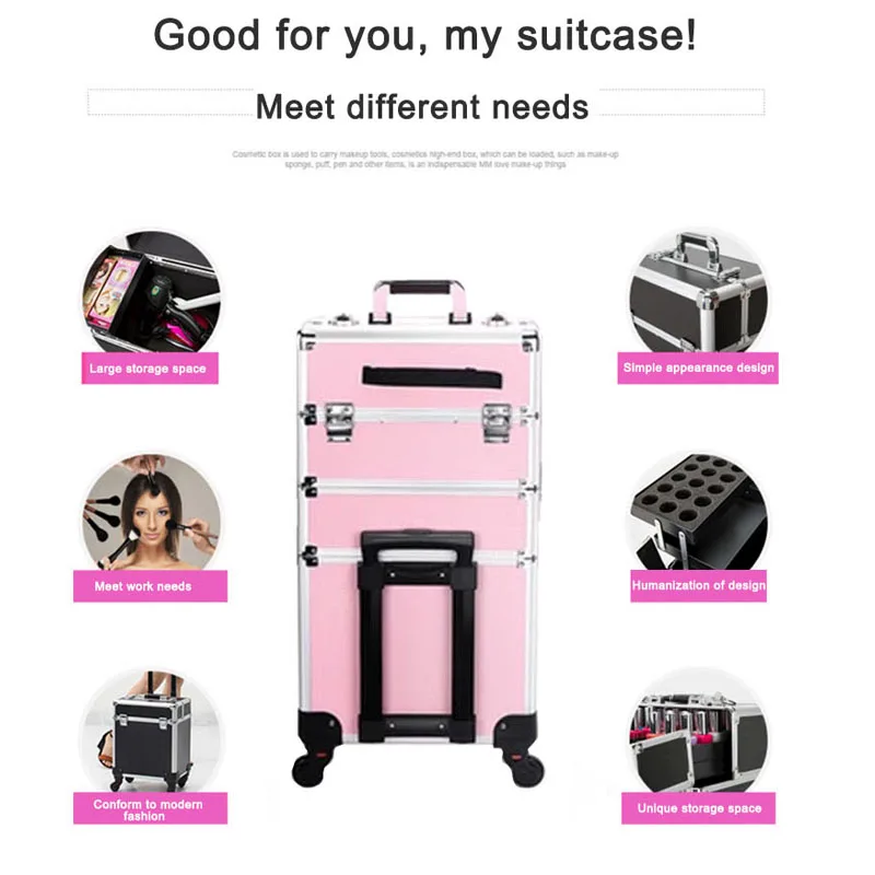3 Layers Pull Rod Toolbox Portable Cosmetics Organizer Removable Makeup Box With Universal Wheel Large Capacity Nail Art Storage - Купить с бесплатной доставкой