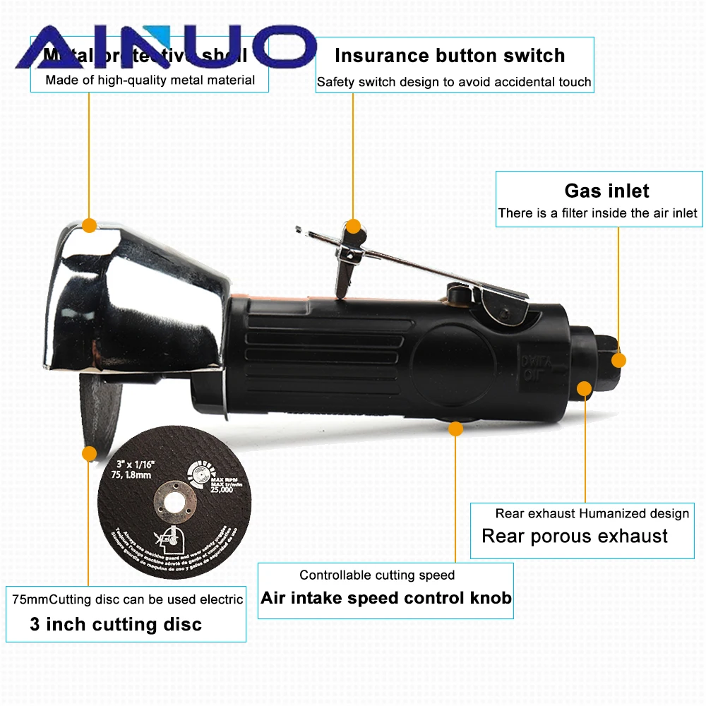 ToFMagAJLooked for 3" Mini Pneumatic Metal Cutting Polishing Grinding Machine Air Angle Grinder Cutting Tool With 5Pcs Cutting Disc 20000RPM for a long time, but could not find it? Bring to your attention 3" Mini Pneumatic Metal Cutting Polishing Grinding Machine Air Angle Grinder Cutting Tool With 5Pcs Cutting Disc 20000RPM with the best price!