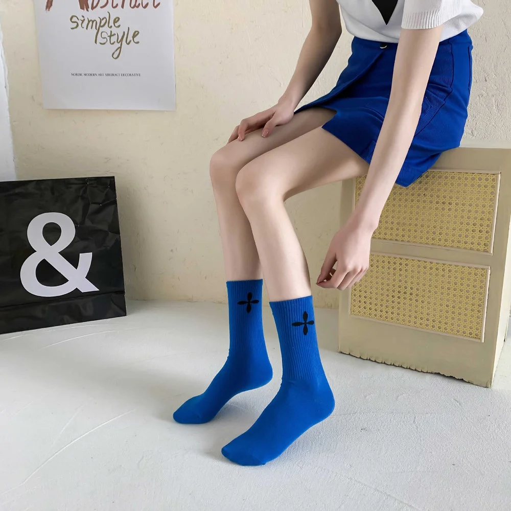 "3 Pairs Korean Embroidered Cross Socks Simple Personality Candy Color Tide Socks Girls Sports Cotton Four-leaf Mid Tube Socks" * Buy Now Just For 3$