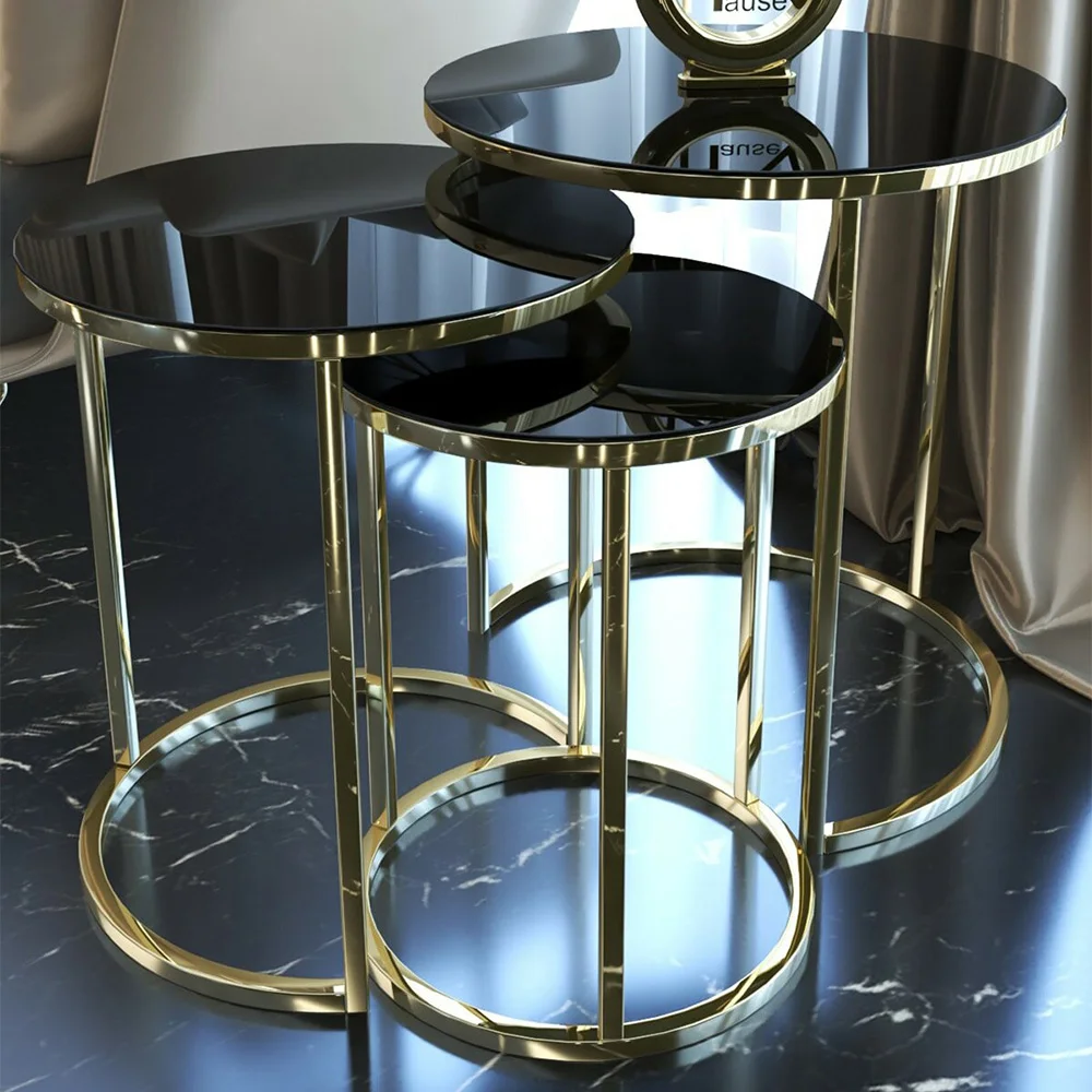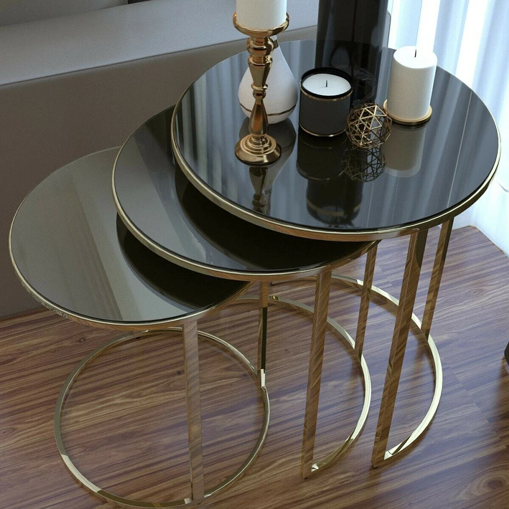EautJJaWJpHere you can buy 3 Pcs Gold Metal Nesting Table, Tea Coffee Service Table Round Living Room Nightstand, Nesting Table - Unbreakable Glass with free delivery to your post office.
