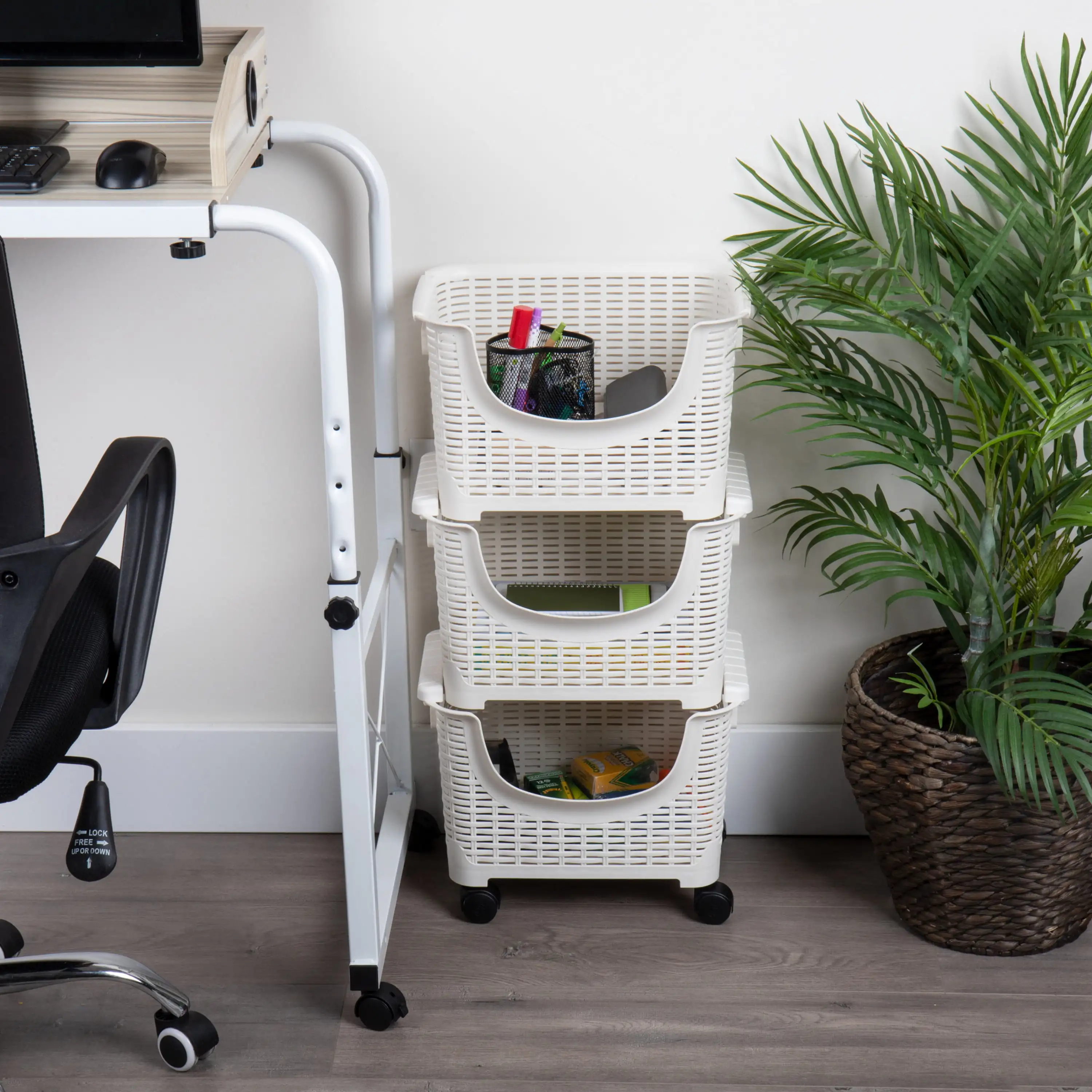 hHeiCnseHzHere you can buy 3-Tier Stackable Rolling Storage Bins, Plastic, White with free delivery to your post office.
