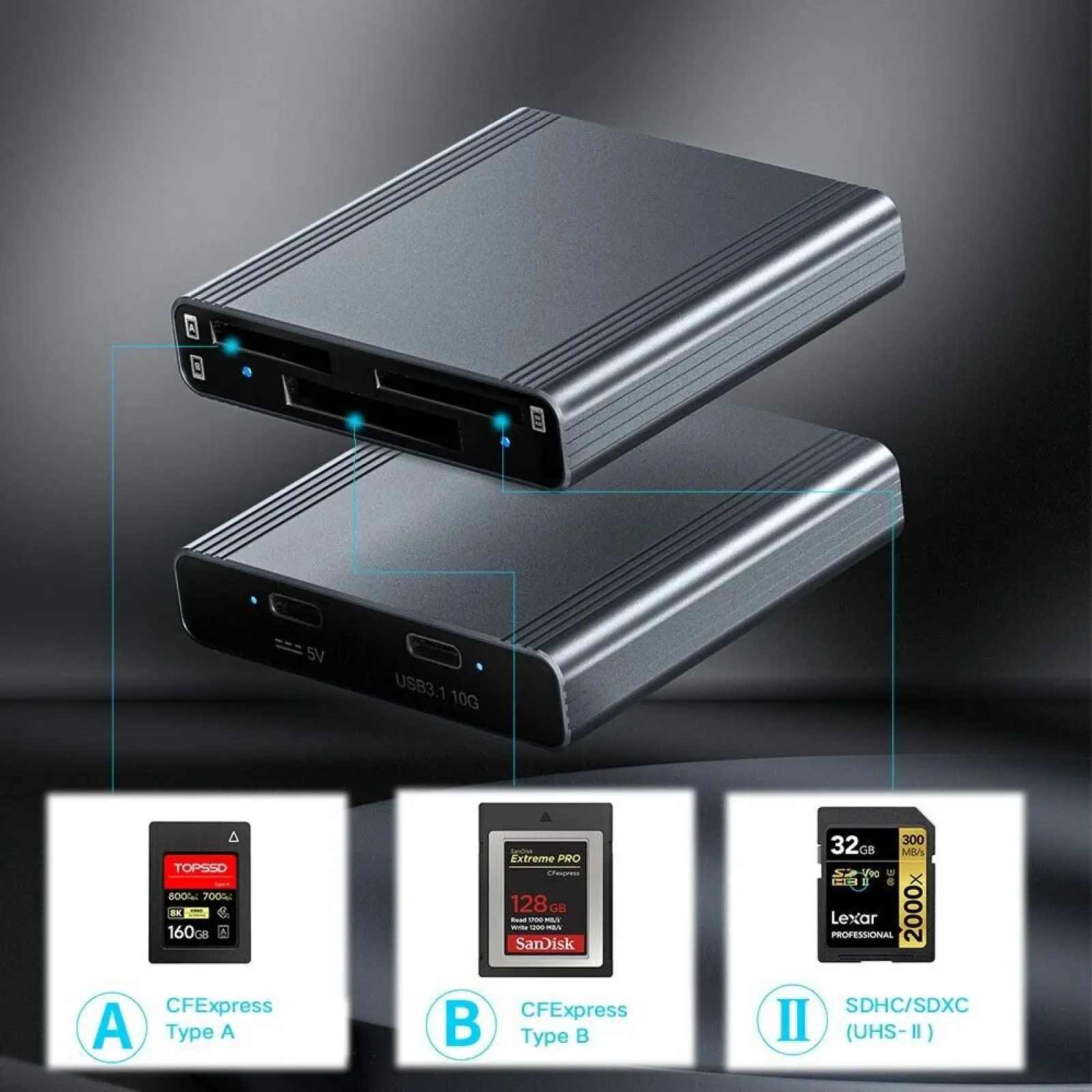 TryknfKYHere you can buy 3 in 1 Card Reader USB 3.1 Gen2 10Gbps For CFexpress Type A / Type B / SD Memory Card Data Transfer Aluminum Alloy Card Reader with free delivery to your post office.