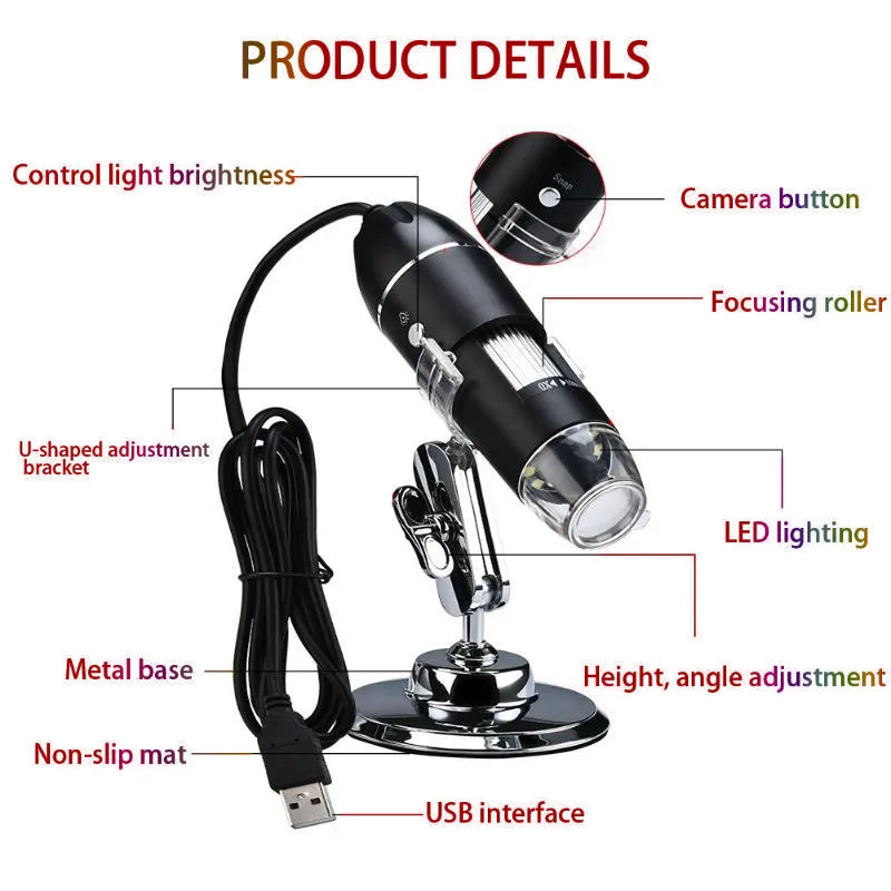 QBylQYpjЗдесь вы сможете купить 3-in-1 Digital Microscope 1600X Portable 2Adapters Support OSX for Windows PC Type-C Micro-USB Phone USB Magnifier with 8LED с бесплатной доставкой до вашего почтового отделения.