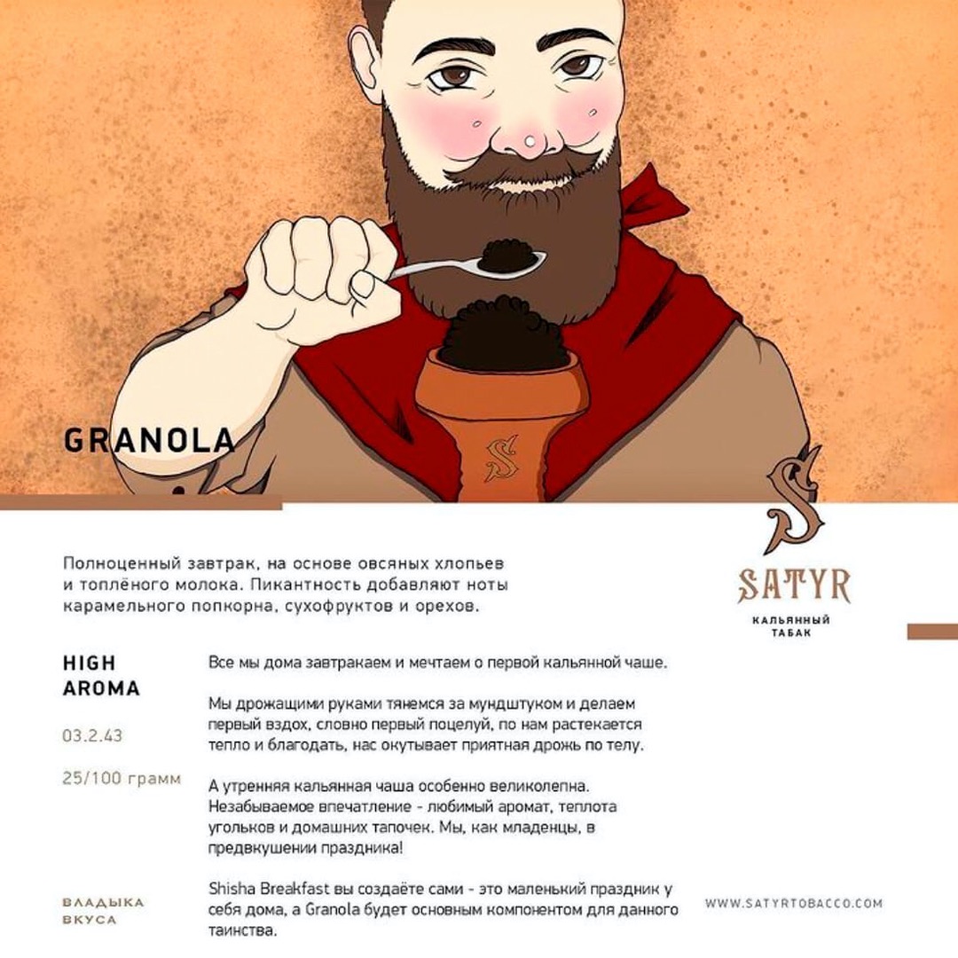 Satyr представил новый вкус Granola в линейке High Aroma. Granola — это завтрак на основе овсяных хлопьев и топленого молока.