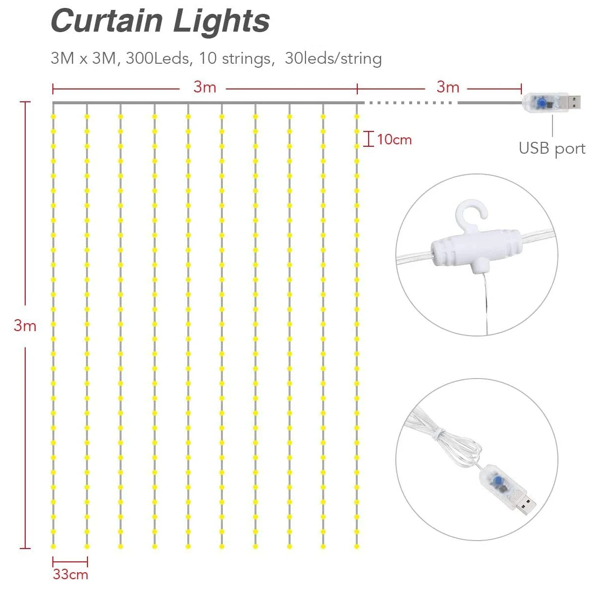 "300 LED Curtains Festoon Lights Fairy Garland with Hooks Remote Controller USB String Light for Christmas Living Room Decoration" * Buy Now Just For 11$