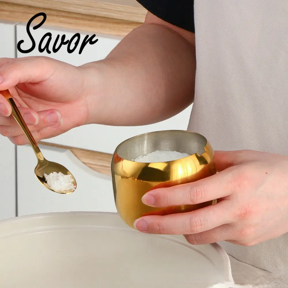 THctACCYЗдесь вы сможете купить 304 Stainless Steel Gold Seasoning Condiment Pot Set Spice Salt Sugar Container Pepper Jar Tool with Lid and Spoon Holder Rack с бесплатной доставкой до вашего почтового отделения.