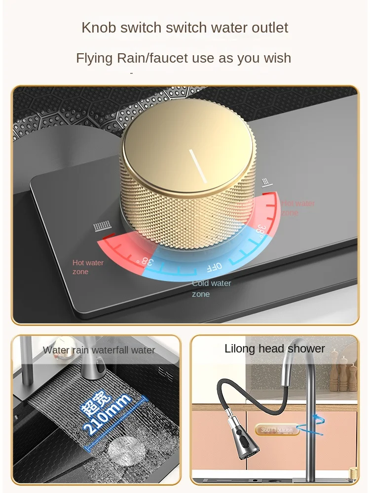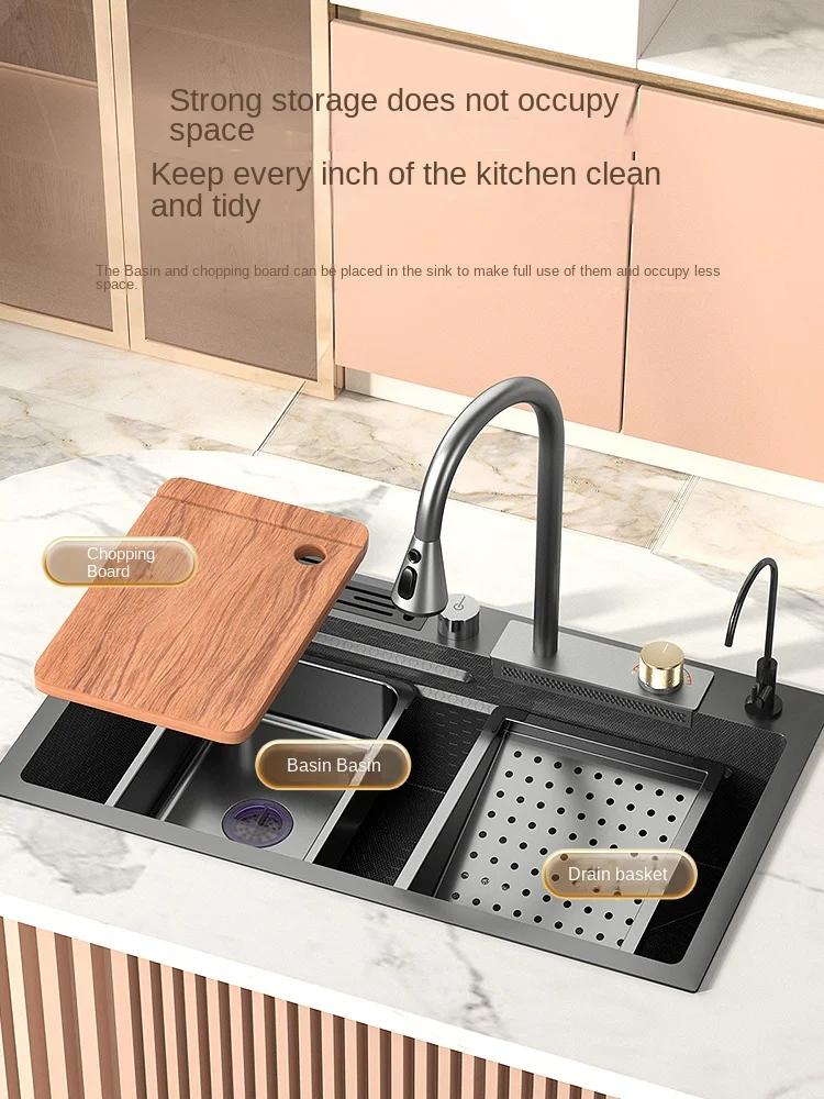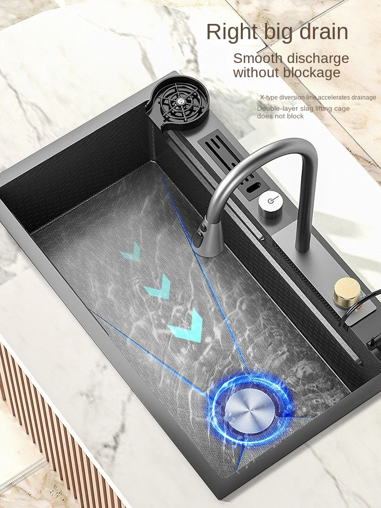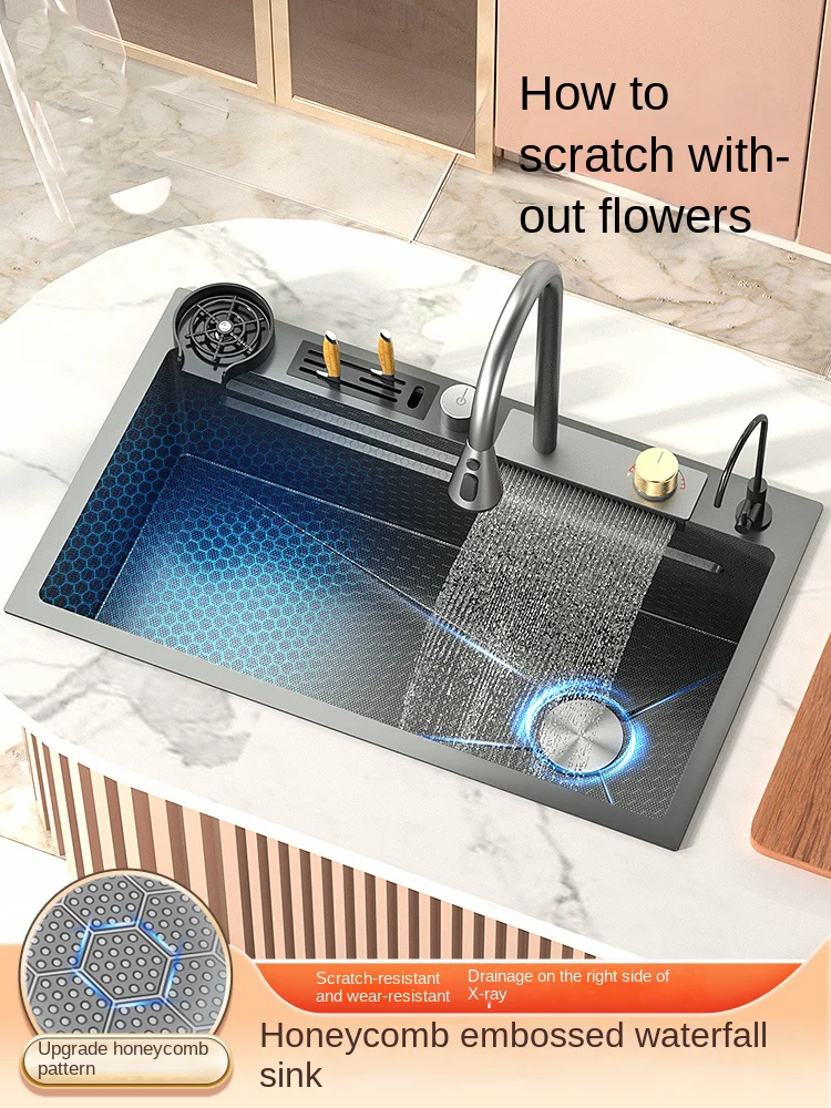 aeFvmKknzЗдесь вы сможете купить 304 Stainless Steel Kitchen Waterfall Sink Digital Display Large Single Sink Dish Basin Sink With Multifunction Touch Waterfall с бесплатной доставкой до вашего почтового отделения.