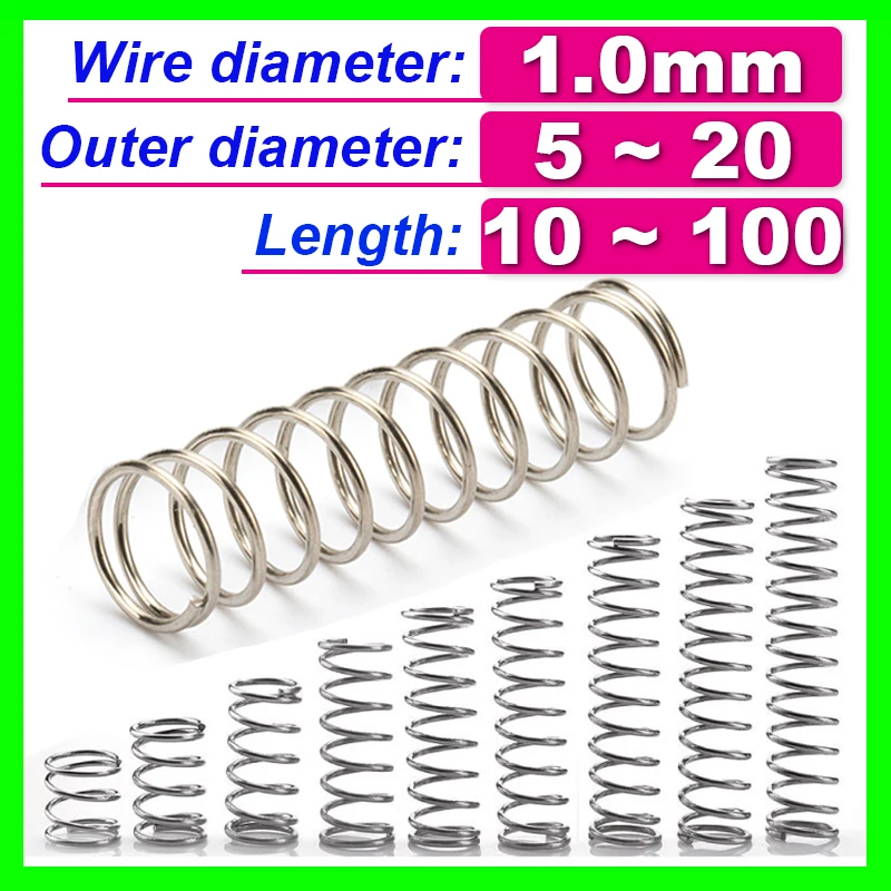 "304 Stainless Steel Spring Wire Diameter 1.0mm Compress Pressure Spring Rotor Return Buffer Cylidrical Coil Od 5mm~20mm 10pcs" * Buy Now Just For 5$