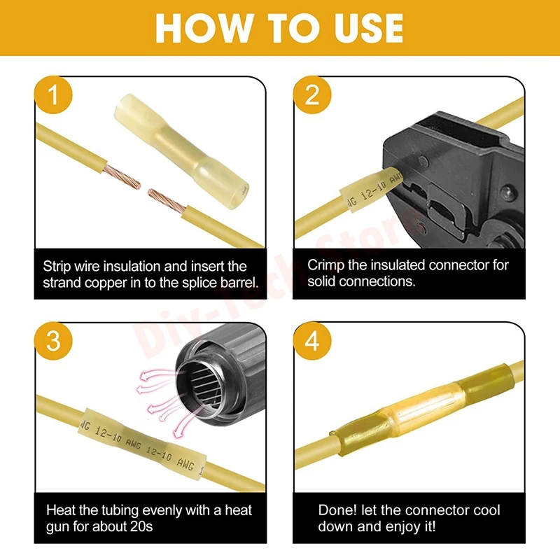 "30Pcs Waterproof Heat Shrink Tube BHT5.5 Butt Connectors Yellow 12-10 AWG, Electrical Crimp Wire Splice Connectors" * Buy Now Just For 1$
