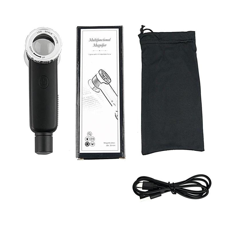 30X LED Scale Magnifying Glass Loupe with LED UV Light Adjustable Focal Jewelry Multifunction Handheld Magnifier with Scale - Купить с бесплатной доставкой