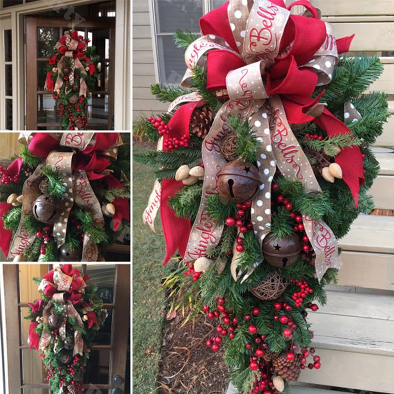 OlqITFBVHere you can buy 30cm/60cm/90cm American Inverted Tree Christmas Background Decoration Red Ribbon and Red Plastic Decoration Handmade Crafts with free delivery to your post office.