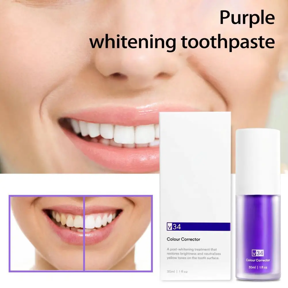 "30ml Toothpaste Freshing Breath Protect Enamel Clean Plaque Anti-moth Fixed Teeth Purple Whitening Colour Correction Toothpaste" * Buy Now With Free Shipping Just For $2