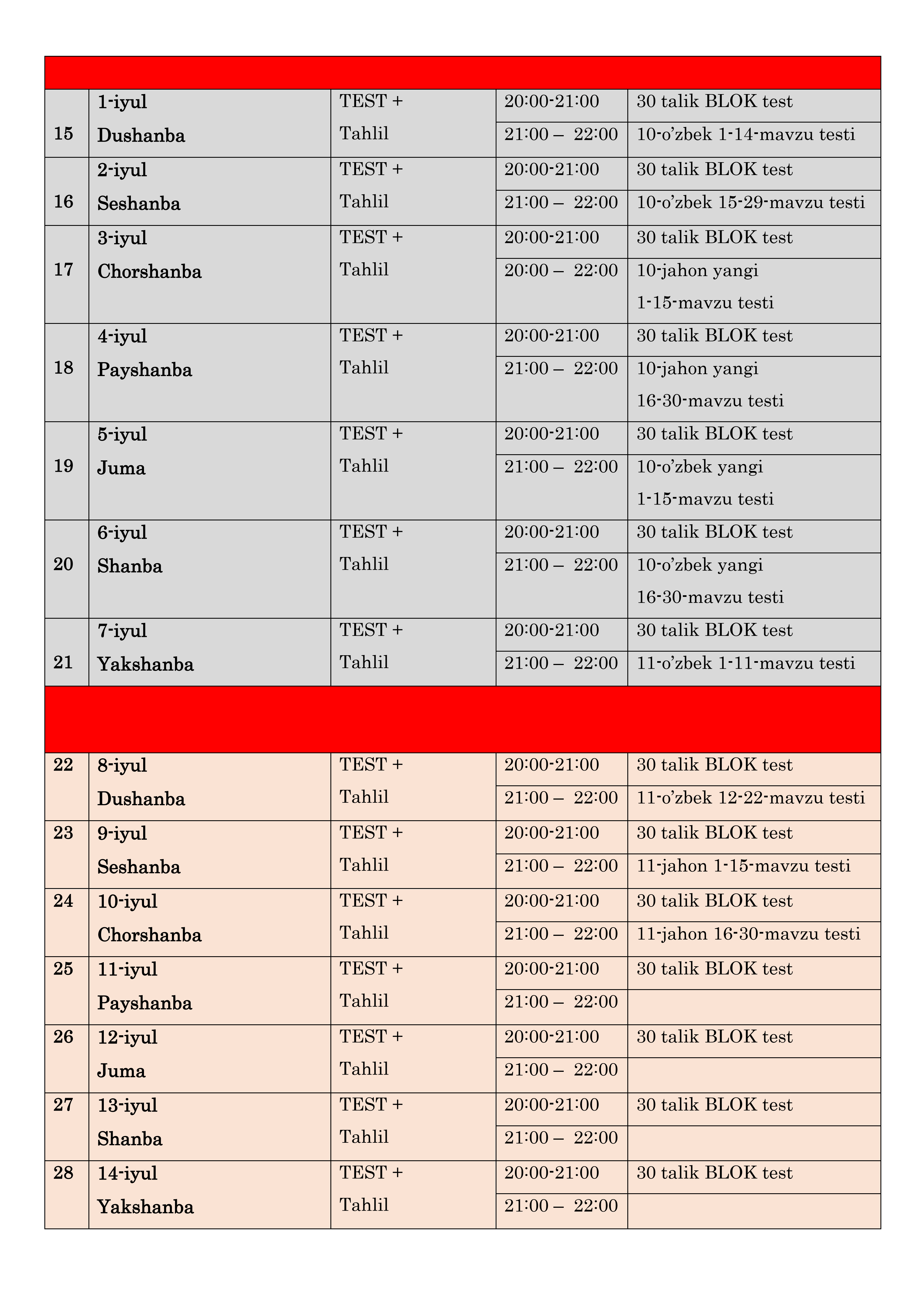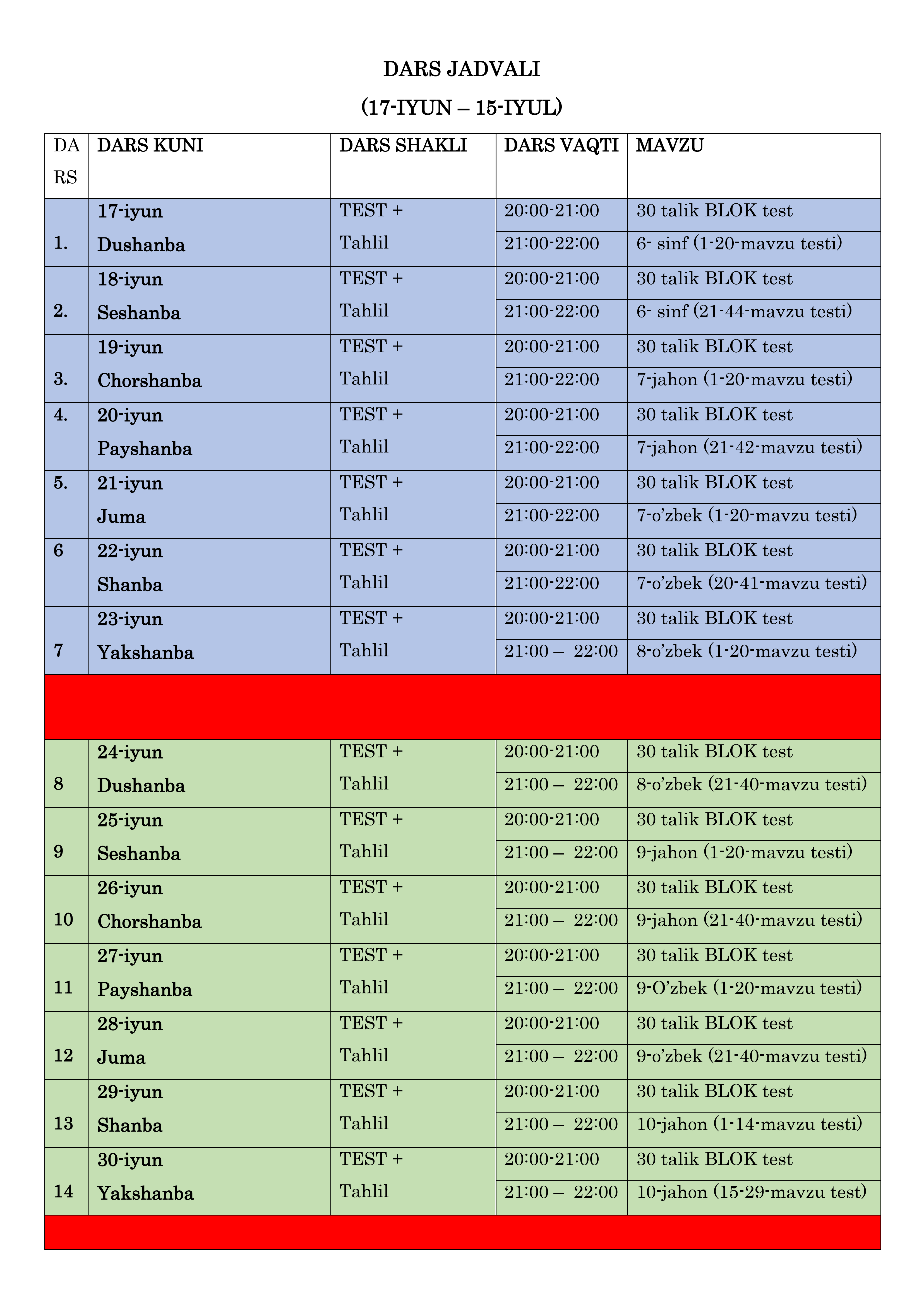 "30x30" loyihasining dars jadvali