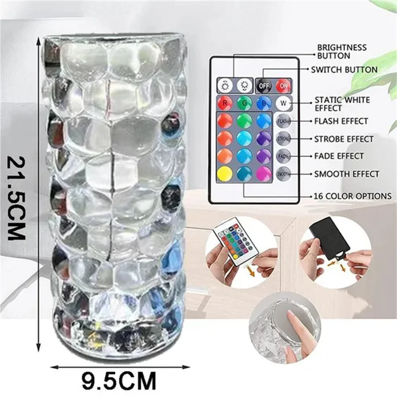 errqJFlmysHere you can buy 3/16 Color LED Crystal Table Lamp Water Drop Projector Touch Adjustable USB Romantic Diamond Ambient Light Bedroom Night Lights with free delivery to your post office.