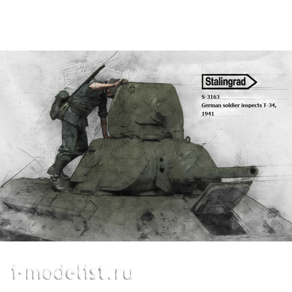 3162 Stalingrad German Soldier Inspects T 34