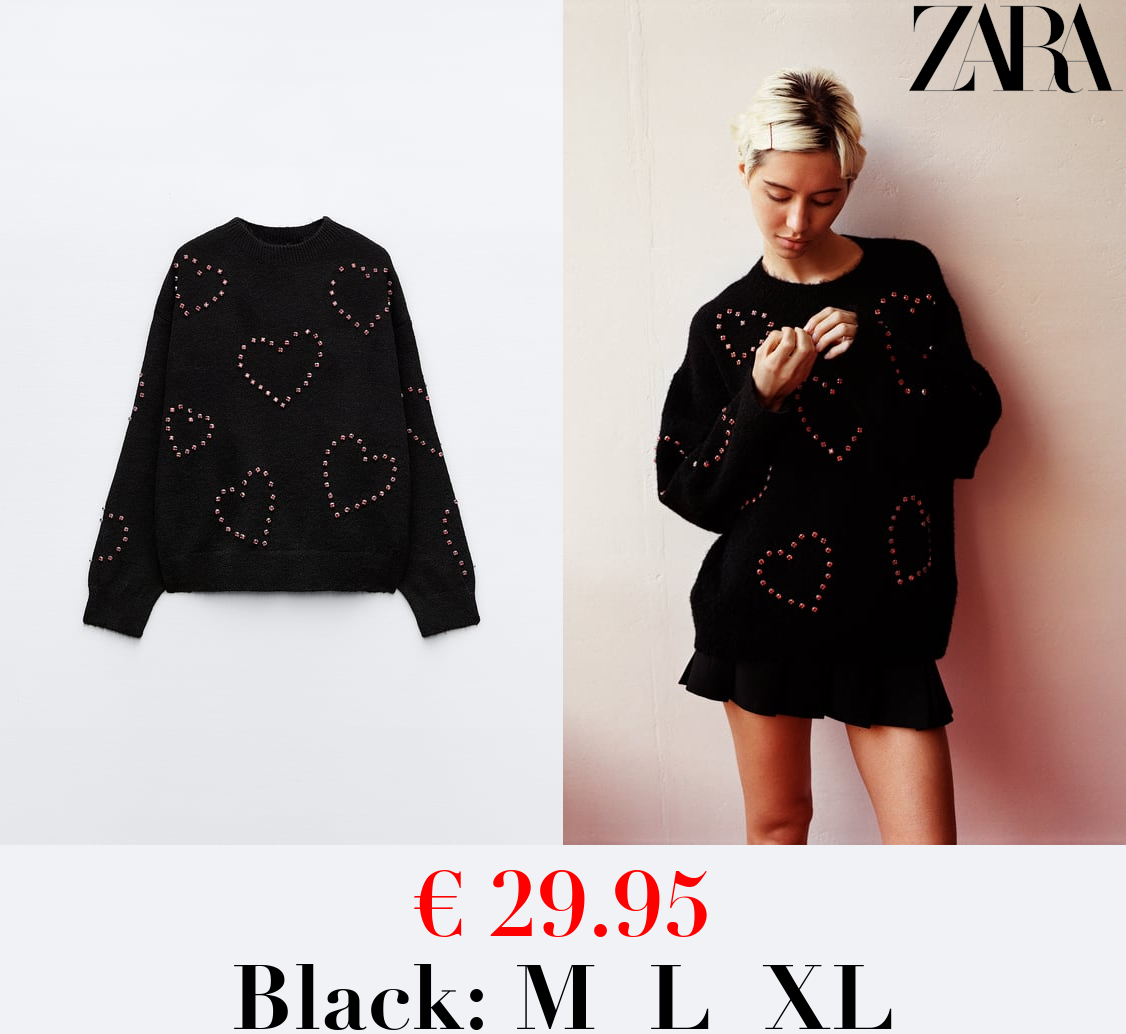 € 29.95 KNIT SWEATER WITH BEADED HEARTS