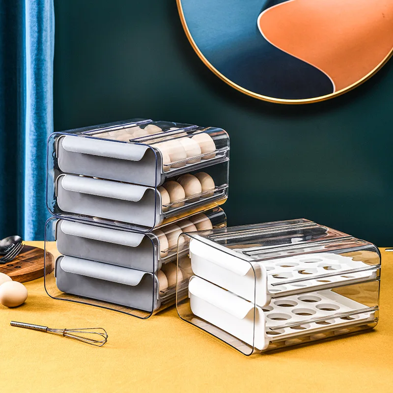 «32 Grids Egg Drawer Plastic Refrigerator Egg Storage Box Stackable Double-Layer Fruit Egg Storage Container Kitchen Accessories» по лучшей цене на рынке! Всего за 10$ (950рублей)