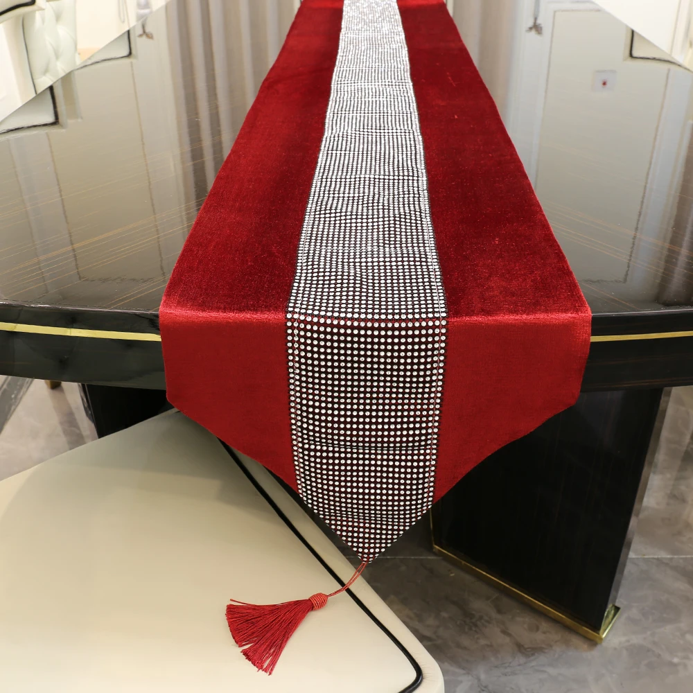 «32X250cm European Style Table Runner Flannel Rhinestones Table Runners with Tassels For Wedding Birthday Party Home Decoration» по лучшей цене на рынке! Всего за 17$ (1615рублей)