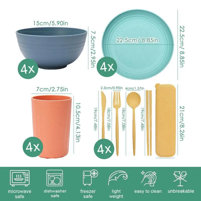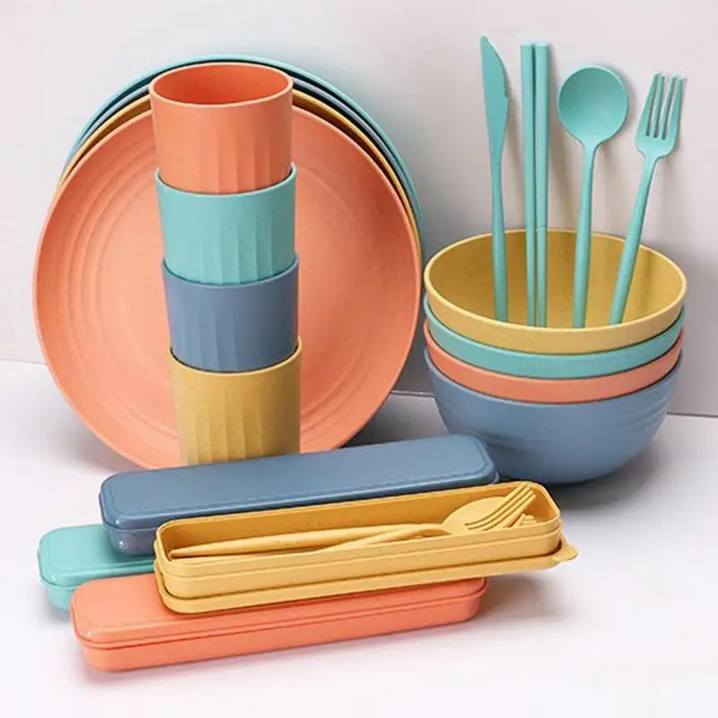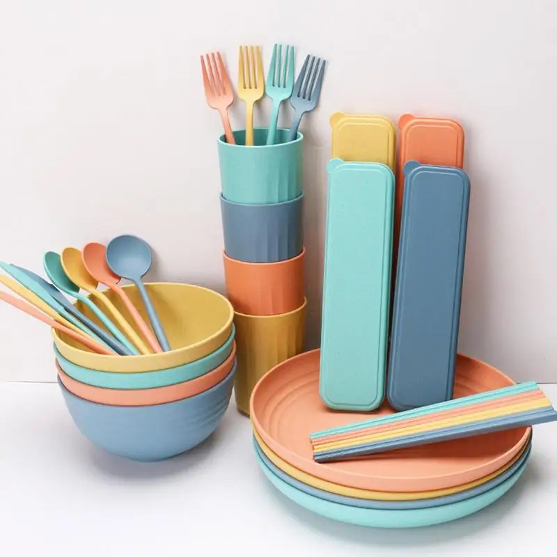 cvyCuebReHere you can buy 32pcs Wheat Straw Dinnerware Sets Light Unbreakable Bowl Forks Spoons Plates Boxes Reusable Cutlery Set For Kitchen Accessories with free delivery to your post office.