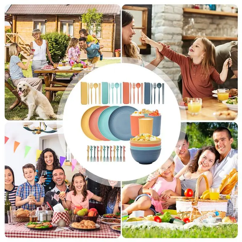 "32pcs Wheat Straw Dinnerware Sets Light Unbreakable Bowl Forks Spoons Plates Boxes Reusable Cutlery Set For Kitchen Accessories" * Buy Now With Free Shipping Just For $38