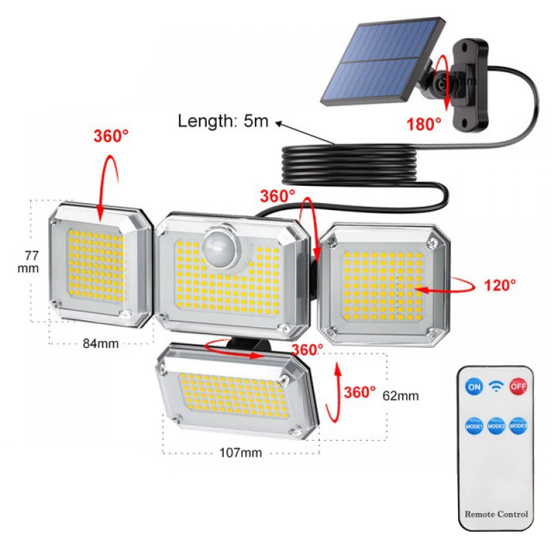 vahhFjIapGHere you can buy 333 LED Solar Lights 5M Wire Length Outdoor Motion Sensor Human Induction Adjustable head IP65 Waterproof Solar Power Wall Lamp with free delivery to your post office.