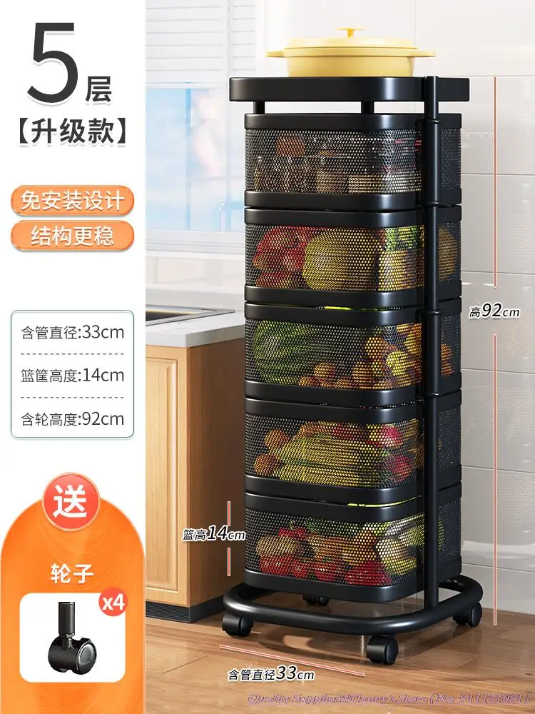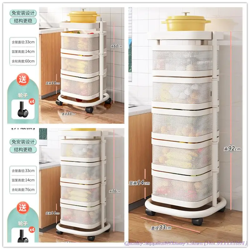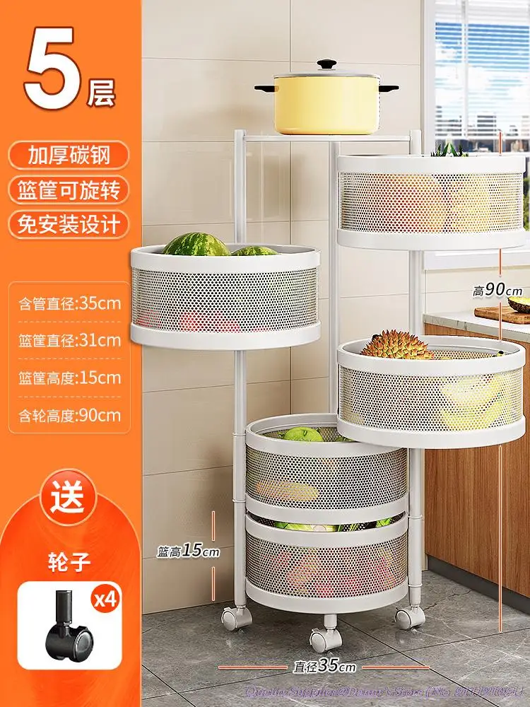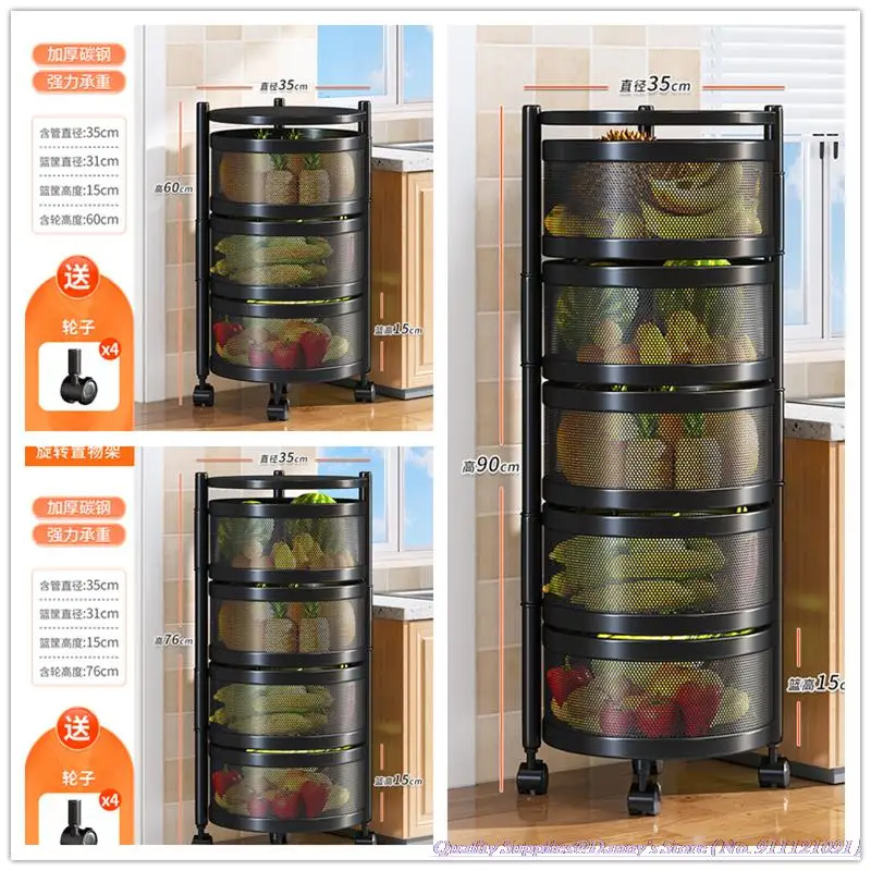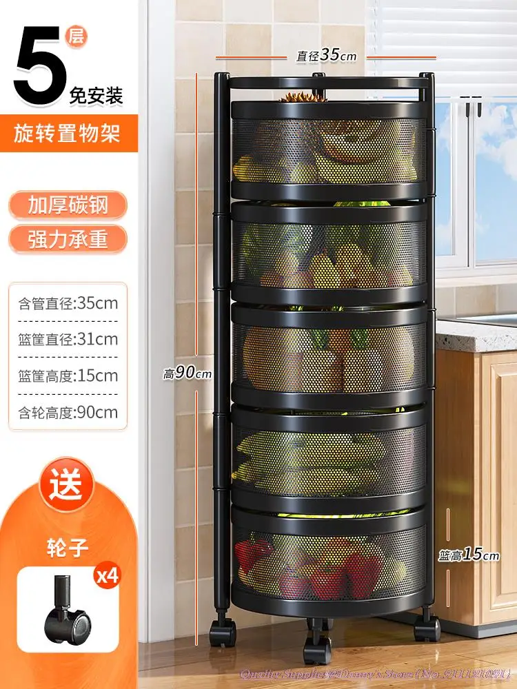 33x33x92cm 5-layer Squared Kitchen Basket Storage Rack White Black Rotatable Circular Fruit Rotating Rack 3/4 layers for option - Купить с бесплатной доставкой