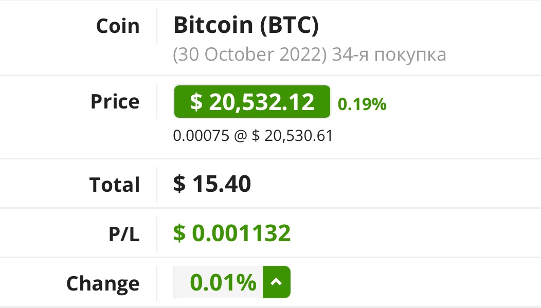 30.10.2022 Моей 34-й покупкой в публичный «Портфельчик» снова стал — Bitcoin (BTC)