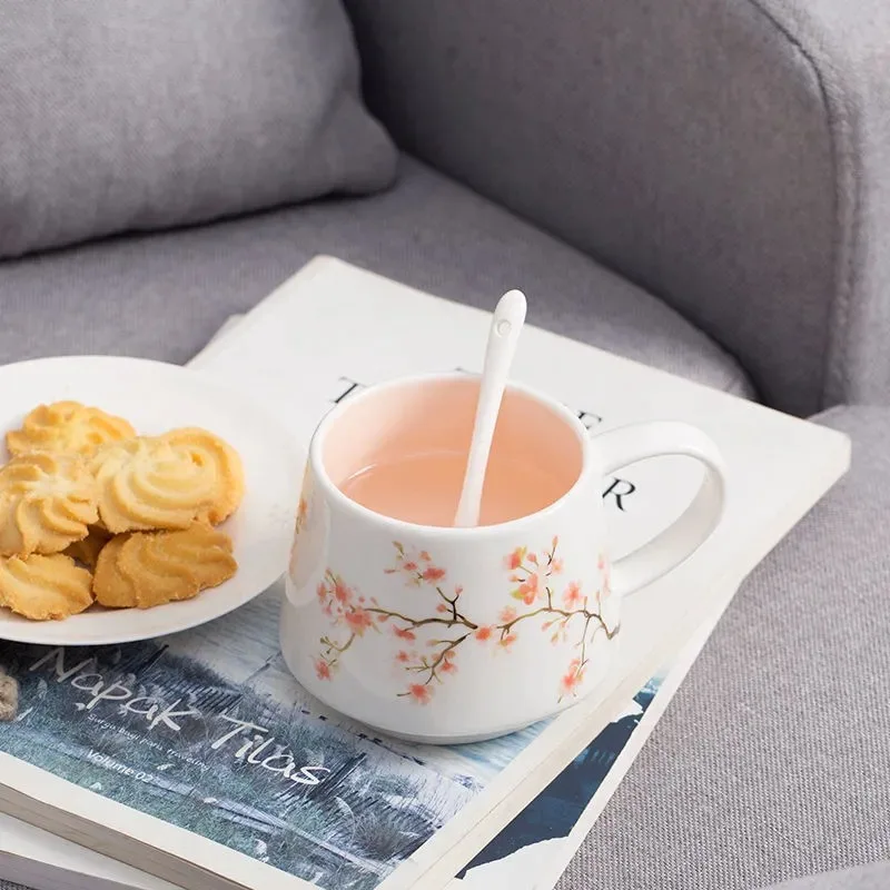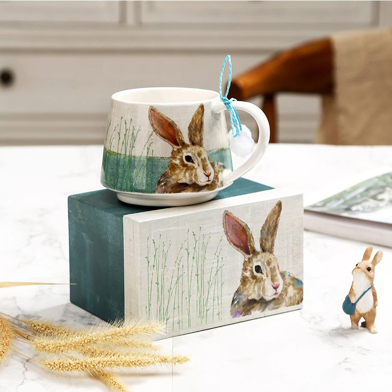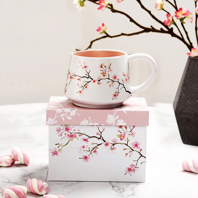 350ML Creative Chinese Style Ceramic Cup Cute Cartoon Flower Rabbit Cherry Blossom Cup Coffee Cup Milk Tea Cup Gift Box Kitchen - Купить с бесплатной доставкой